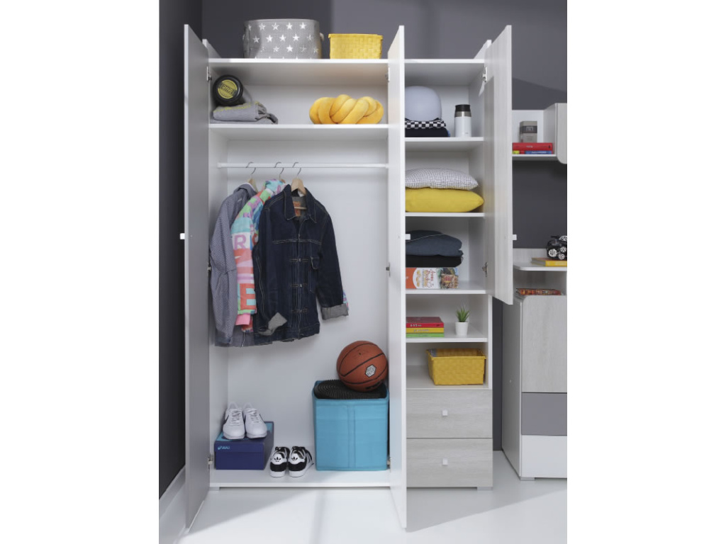 Hledáte perfektní skříň pro pokoj vašeho dítěte? Skříň Como CM1 je skvělým řešením. Tato skříň je ideální pro dětské nebo studentské pokoje díky svému elegantnímu vzhledu a praktickým funkcím. Svou bílou lesklou barvou, dubem Wilton a šedými detaily přidá skříň Como CM1 nádech modernosti do jakéhokoliv prostoru.