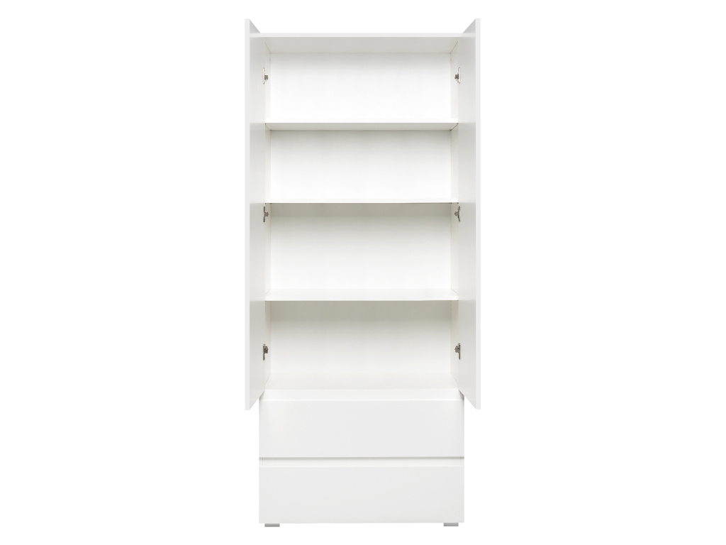 Bílá barva skříně IMAGE 7 je dokonalým doplňkem každého interiéru. Dveře s elegantními rukojetmi snadno otevřete a uvidíte, jak praktický je její interiér. Tři police poskytují dostatek místa pro organizaci vašich věcí, ať už jsou to oblečení, knihy nebo dekorativní předměty. Dvě široké zásuvky s kovovými pojezdy jsou ideální pro uložení menších předmětů a dokumentů.