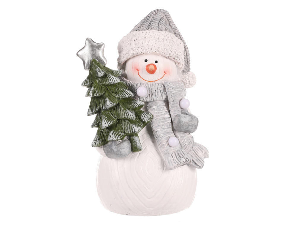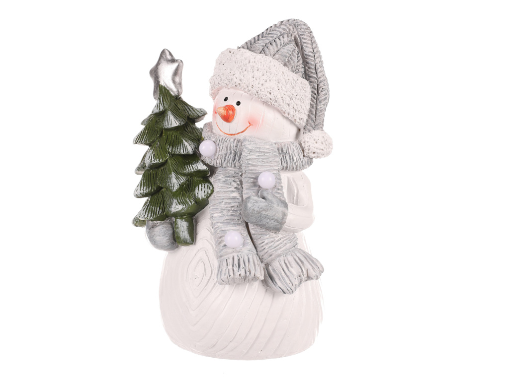 Sněhulák držící stromek - polyresin, LED osvětlení uvnitř. - KEO023