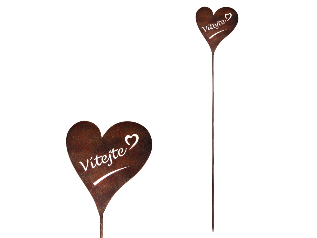 Kovový zápich v podobě srdíčka v měděné až narezavělé barvě s nápisem "Vítejte" je skvělým prostředkem, jak prokázat okolí svou otevřenost a zároveň dodat unikátní dekoraci vaší zahradě. Můžete jej snadno umístit na záhony, nechat vyniknout na volno v trávníku, nebo ozdobit okolí květin, či keřů. Zabere málo místa, a přitom bude výrazným bodem, který jen stěží někdo přehlédne. Kovová konstrukce zajišťuje trvanlivost a odolnost vůči povětrnostním vlivům, což znamená, že tuto dekoraci můžete nechat venku prakticky po celý rok. Tento zápich přidává do vaší zahrady nejen zajímavý estetický prvek, ale také osobitý charakter, a stane se výrazným bodem vaší celkové kompozice.Doplňkové parametry