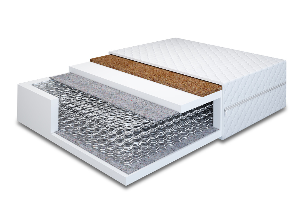 Matrace STANDARD PLUS nabízí kombinaci pevné opory a pohodlí díky vrstvené konstrukci z kokosové rohože, polyuretanové pěny a pružin Bonnell. Potah na zip umožňuje snadnou údržbu, klimatizační vlákno zajišťuje prodyšnost a svěží pocit, kokosová rohož (1200 g/m², tloušťka ±1,2 cm) poskytuje pevnou a stabilní podporu, 3 cm vrstvy polyuretanové pěny tlumí tlak a zvyšují komfort, a 9 cm pružiny Bonnell spolu s čalouněnými distančními podložkami rovnoměrně rozkládají váhu těla. S tvrdostí H4/H3 a celkovou tloušťkou cca 19 cm je matrace STANDARD PLUS ideální volbou pro zdravý spánek, ergonomickou oporu páteře a dlouhodobou odolnost.