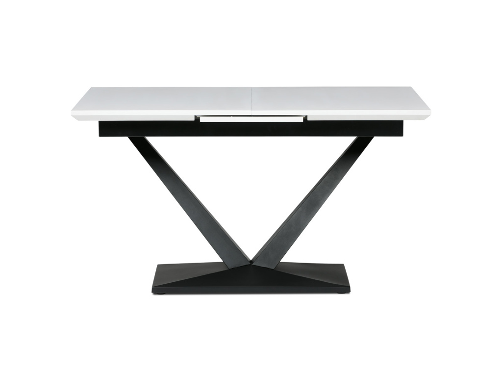 Rozkládací jídelní stůl značky Autronic vyniká svou robustní centrální nohou ve tvaru V. Bílá matná deska z MDF materiálu nabízí odolný a snadno udržovatelný povrch, ideální pro každodenní stolování. Díky rozkládacímu mechanismu snadno přizpůsobíte velikost stolu aktuálním potřebám, což je skvělé pro rodinná setkání nebo hosty.Tento stůl bude stylovým a funkčním doplňkem každé jídelny, který zaujme na první pohled.Doplňkové parametry