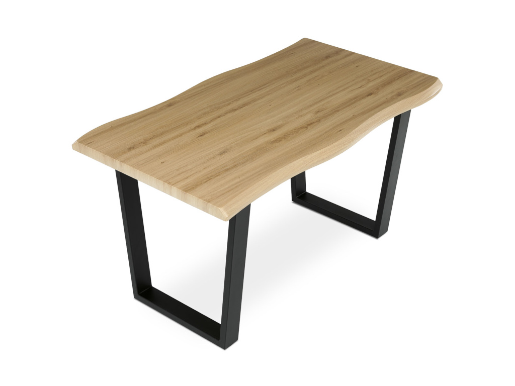 Stůl jídelní, 140x80x75 cm, MDF deska, dekor divoký dub, kovová nohy ve tvaru U, černý matný lak - HT-F4214 OAK