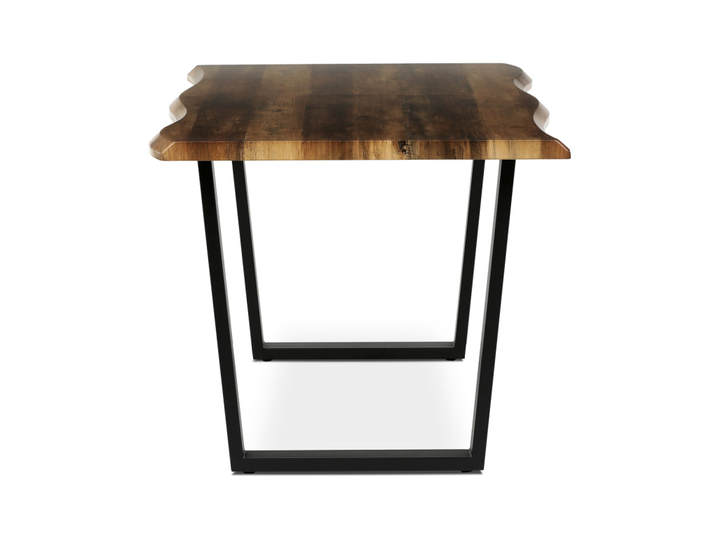 Jídelní stůl značky Autronic v industriálním stylu přinese do vaší jídelny výrazný designový prvek. Deska stolu v dekoru starého dřeva nabízí atraktivní strukturu a odolnost díky kvalitní MDF. Působivý vzhled je podtržen černými kovovými nohami, které poskytují stabilitu a vytvářejí moderní kontrast k odstínu starého dřeva desky. Atypický tvar desky dodává stolu originalitu, zatímco jeho pevná konstrukce zajišťuje dlouhou životnost. Tento stůl je ideální pro milovníky designu, kteří hledají spojení funkčnosti a stylu.Doplňkové parametry