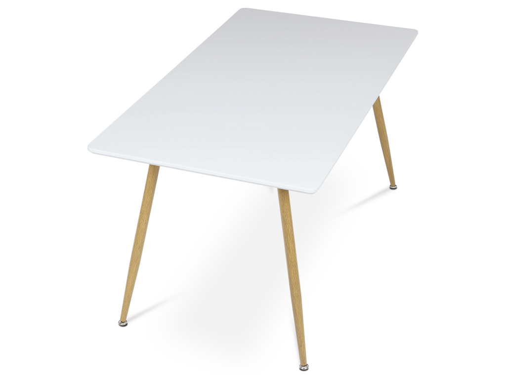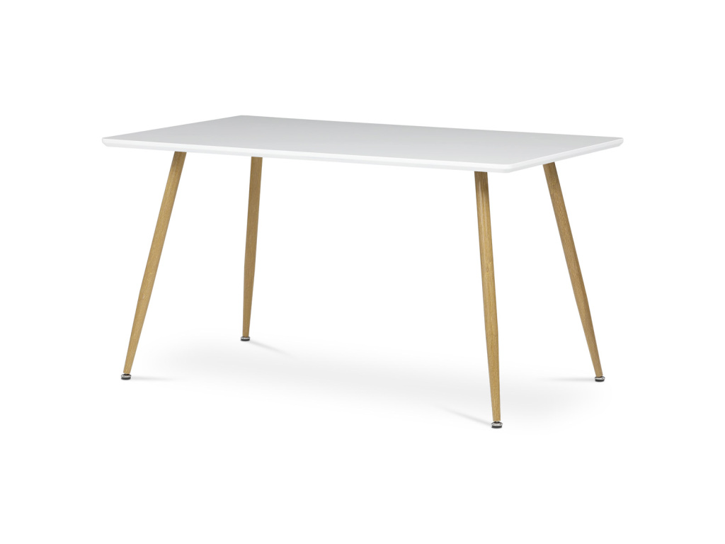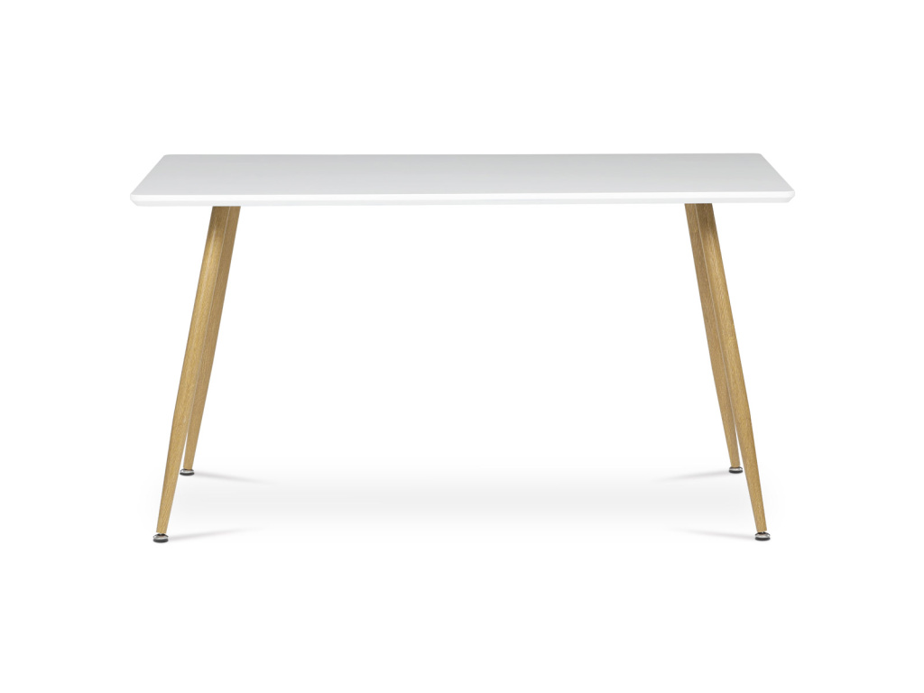 Stůl jídelní 140x80, MDF, bílá matná deska, kovové nohy v barvě dubu. - HT-W1214 WT