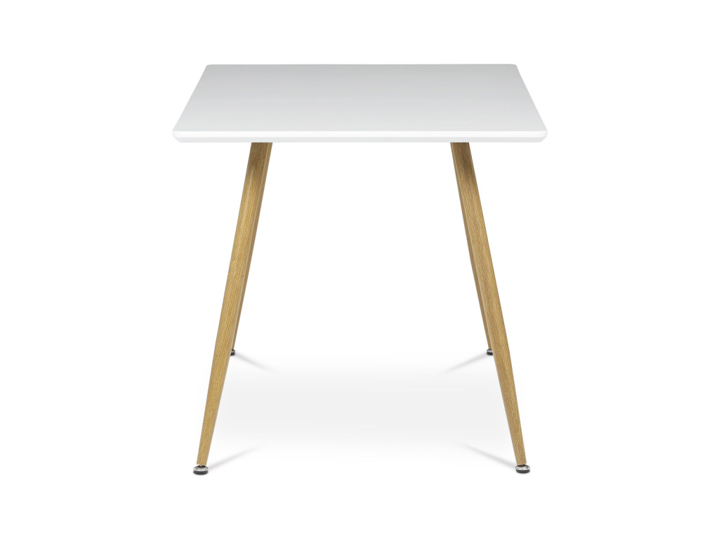 Jídelní stůl značky Autronic v minimalistickém skandinávském stylu přináší lehkost a eleganci do každého interiéru. Bílá matná deska z MDF materiálu je odolná a snadno udržovatelná, zatímco stabilní kovové nohy v dekoru přírodního dubu dodávají stolu šarm. Díky svému kompaktnímu rozměru je ideální pro menší jídelny nebo kuchyně. Praktické kónické nohy s kyvnými kluzáky zajistí stabilitu i na nerovném povrchu. Tento stůl je perfektní volbou pro ty, kteří hledají funkčnost spojenou s moderním designem.Doplňkové parametry