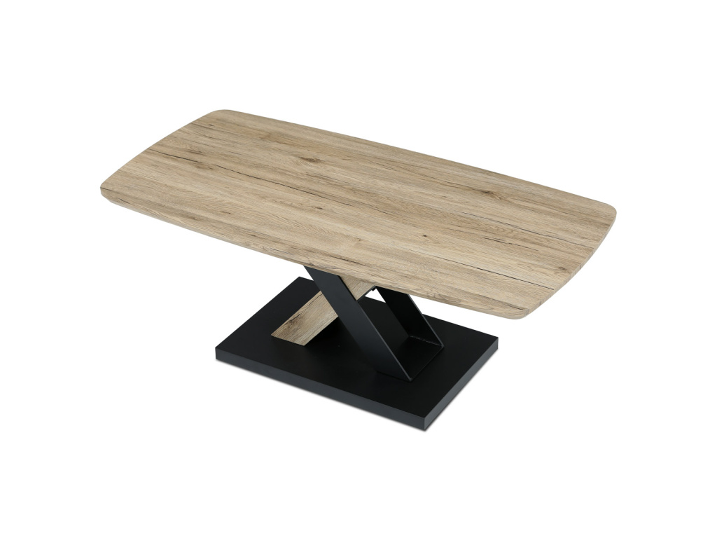 Konferenční stolek značky Autronic zaujme moderním designem s dekorem dubu San Remo, který vnese do vašeho obývacího pokoje příjemnou atmosféru. Atypická deska z MDF s matnou povrchovou úpravou upevněná na centrální konstrukci, která kombinuje přírodní a kovové prvky. Stabilní podnož zajišťuje pevnost a odolnost, díky čemuž je stolek nejen stylovým, ale i praktickým doplňkem. Ideální pro každodenní využití i jako reprezentativní prvek vašeho interiéru.Doplňkové parametry