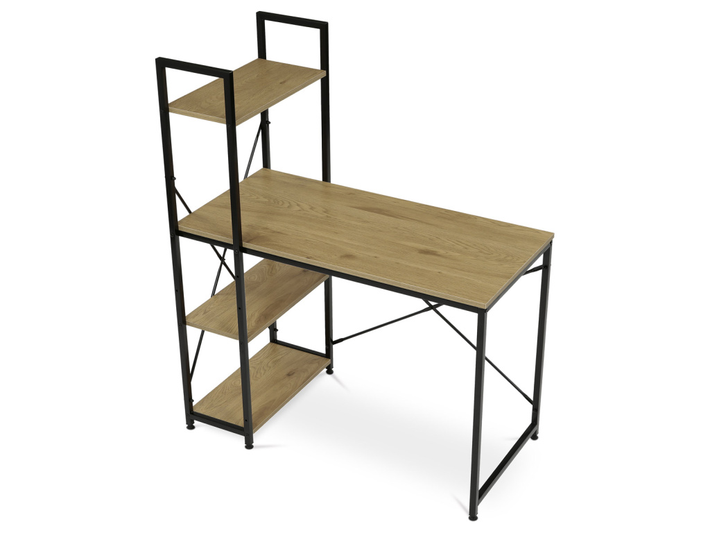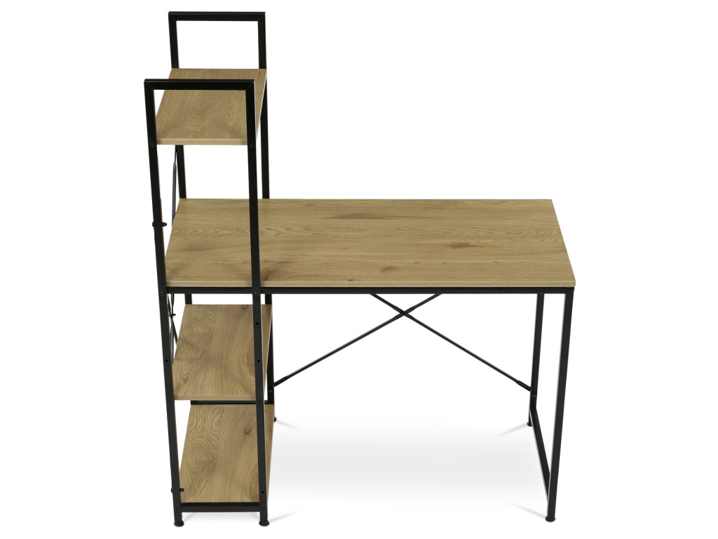 Stůl pracovní s regálem, MDF, dekor dub, černý kov - GD-512 OAK