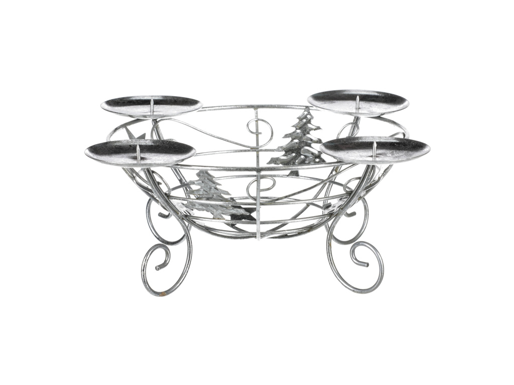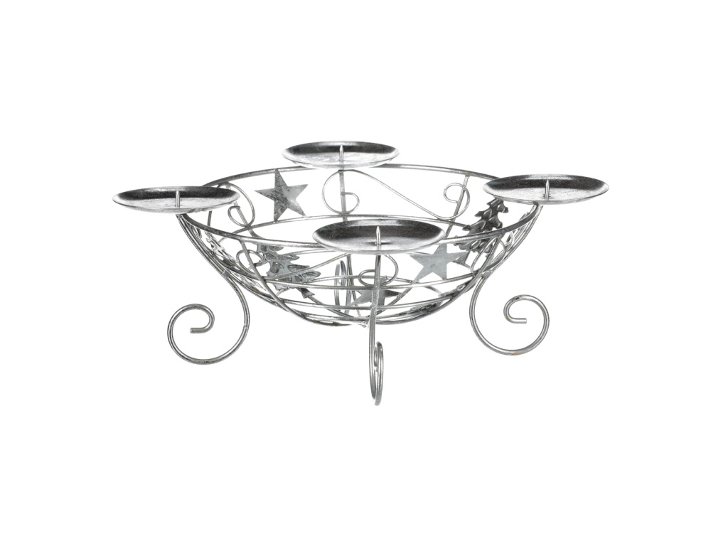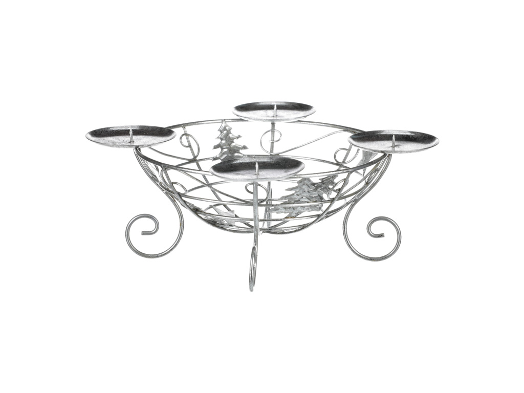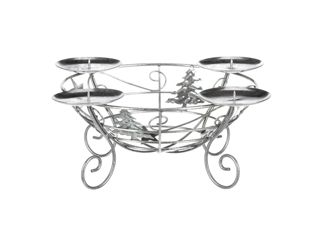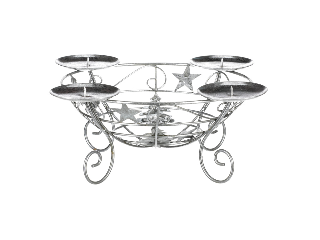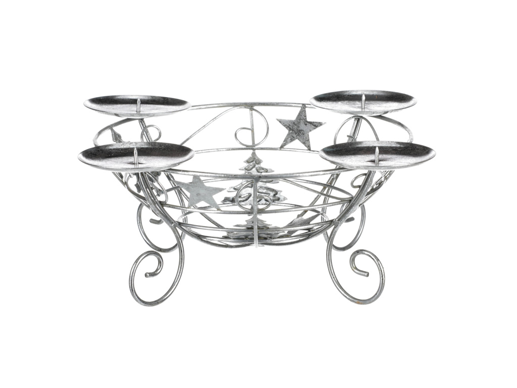 Tento kovový svícen ve stříbrné barvě je dobrým základem pro tvorbu vlastní kreativní vánoční a zejména adventní výzdoby. Obsahuje celkem čtyři držáky pro širší svíčky a zbytek tvoří ozdobná konstrukce na nožičkách s dostatečným prostorem pro aranžování. Svojí univerzálností a všestranností nabízí nepřeberné množství využití a je jen na vaší fantazii a dekoračních schopnostech, jak s ním naložit.Doplňkové parametry