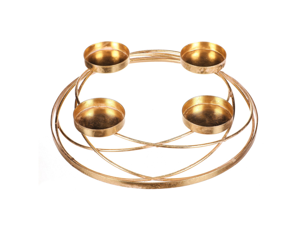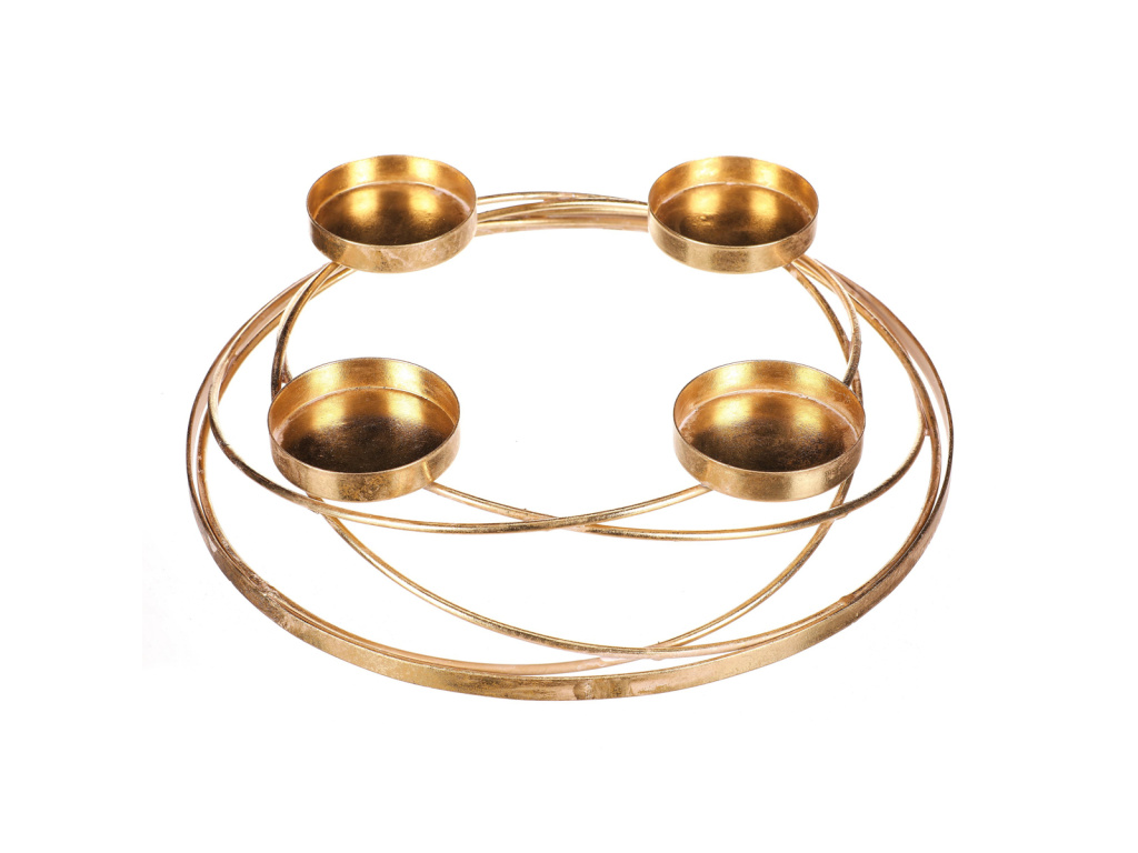 Tento kovový svícen ve zlatém dekoru je dobrým základem pro tvorbu vlastní kreativní vánoční a zejména adventní výzdoby. Obsahuje na kovové konstrukci celkem čtyři držáky pro postavení svíček, typické pro adventní svícen. Máte tak jedinečnou základnu pro vytvoření svého vlastního adventního věnce s osobitým rukopisem. Svou univerzálností a všestranností nabízí nepřeberné množství využití a je jen na vaší fantazii a dekoračních schopnostech, jak s ním naložit.Buďte první, kdo napíše příspěvek k této položce.