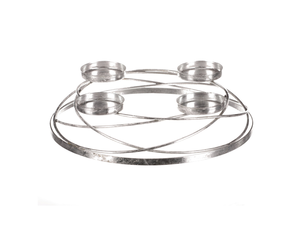 Tento kovový svícen ve stříbrném dekoru je dobrým základem pro tvorbu vlastní kreativní vánoční a zejména adventní výzdoby. Obsahuje na kovové konstrukci celkem čtyři držáky pro postavení svíček, typické pro adventní svícen. Máte tak jedinečnou základnu pro vytvoření svého vlastního adventního věnce s osobitým rukopisem. Svou univerzálností a všestranností nabízí nepřeberné množství využití a je jen na vaší fantazii a dekoračních schopnostech, jak s ním naložit.Buďte první, kdo napíše příspěvek k této položce.