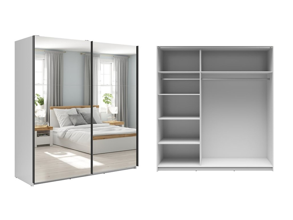 TETRIX šatní skříň je vyrobena z vysoce kvalitních materiálů s vysokým leskem, které jsou odolné proti poškrábání a opotřebení. Bílý lesk dokonale odráží světlo, dodává skříni luxusní vzhled a vytváří iluzi většího prostoru. Navíc velké zrcadlo na jedněch posuvných dveřích skříně přidává na její praktičnosti a zároveň působí velmi elegantně.