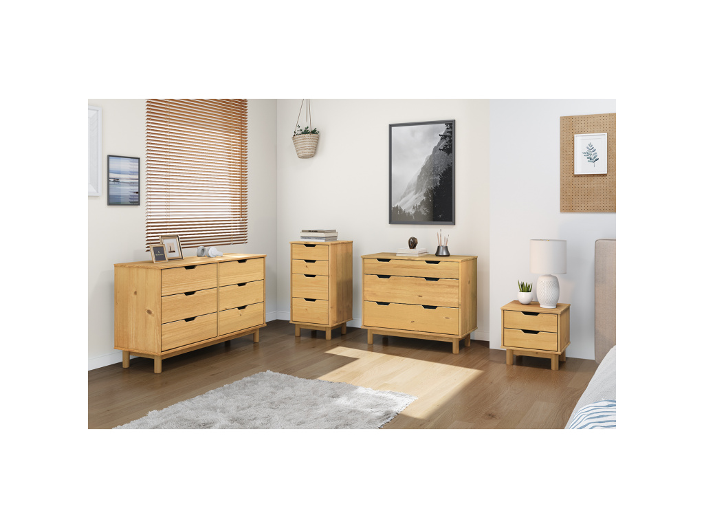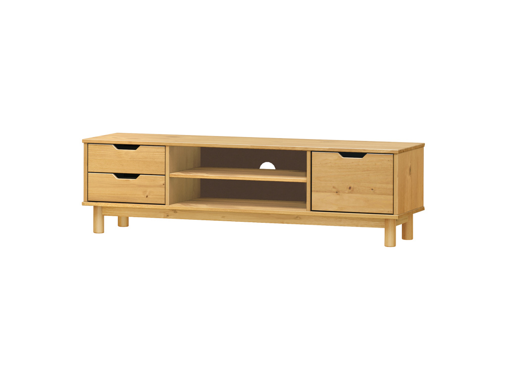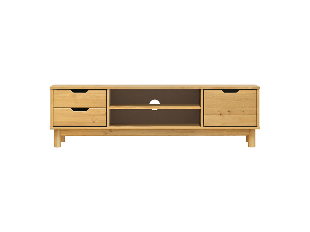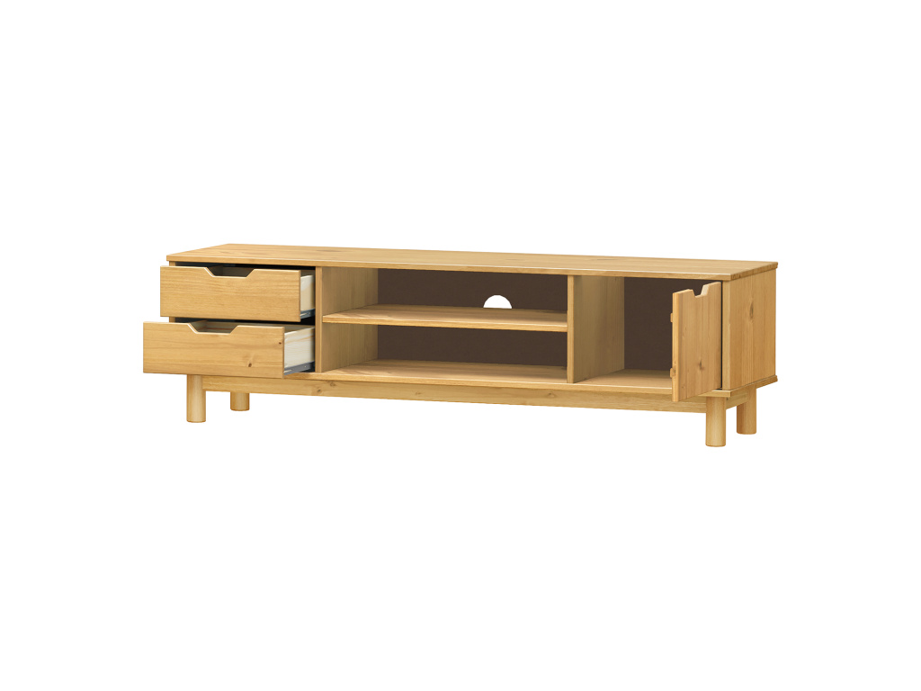 TV stolek BONITO 2 s 1 dvířky a 2 zásuvkami ve voskovaném provedení v medovém odstínu přináší do obývacího pokoje teplý a přirozený vzhled masivního dřeva. Je vyroben z kvalitní masivní borovice, jejíž kresba je zvýrazněna ochrannou voskovou úpravou, která chrání povrch a podtrhuje přírodní charakter nábytku. Dvě prostorné zásuvky s kovovými pojezdy zajišťují plynulé a tiché otevírání a nabízejí úložný prostor pro drobnosti, zatímco dvířka a otevřená police s otvorem pro vedení kabelů umožňují praktické uspořádání multimediálních zařízení. Nadčasový design stolku BONITO 2 se snadno kombinuje s ostatním nábytkem a stane se stylovým a funkčním doplňkem vašeho interiéru.
