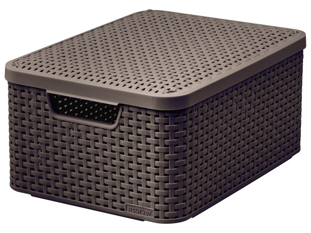 - úložný box RATTAN Style2 s víkem M - stohovatelný - polyratan - 2 úchyty - otvory ve výpletu zajišťují cirkulaci vzduchuDoplňkové parametry