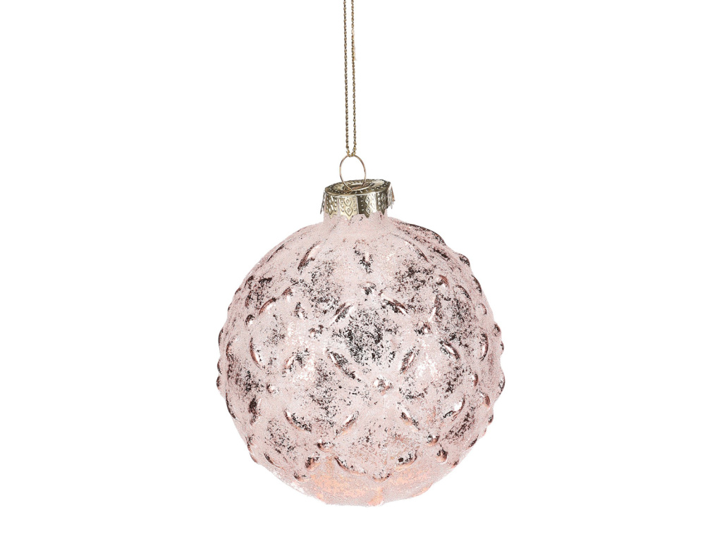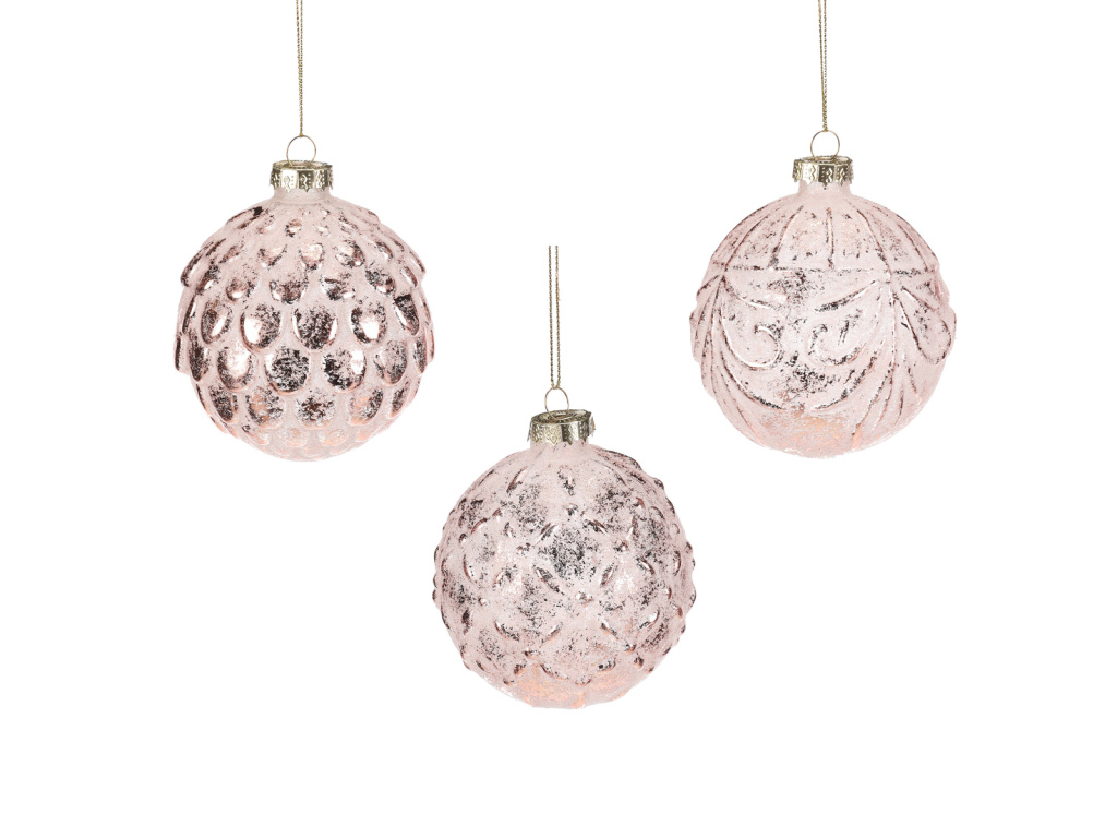 Elegantní skleněná vánoční ozdoba v kulatém tvaru a růžovém odstínu. Jedná se o mix tří různých vzorů umocňující variabilitu při zdobení, což dekoracím přidává na estetickém dojmu. Uvedená cena je za 1 kus, přičemž balení obsahuje 12 ozdob, tedy od každého vzoru po čtyřech kusech. Krásná a stylová závěsná dekorace pro vánoční výzdobu stromečku, případně vhodná na pověšení kdekoli jinde v interiéru.Doplňkové parametry