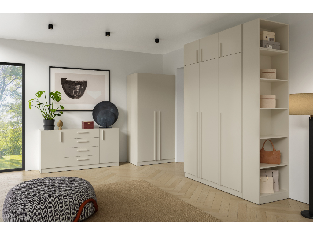 Velká komoda BRAGA BRK1 je ideálním řešením pro ty, kteří hledají spojení praktického úložného prostoru a elegantního designu. Díky své velikosti nabízí dostatek místa pro přehledné uložení oblečení, prádla i dalších domácích potřeb, a zároveň pomáhá udržet interiér čistý a organizovaný. Nadčasové provedení s důrazem na jednoduché linie se snadno přizpůsobí různým stylům bydlení. Komodu lze doplnit o kovové úchyty, které dodají modernější vzhled a umožní přizpůsobení podle osobních preferencí. Na výběr jsou stylové barevné varianty platinovo šedá, dub Cremona a kašmír, díky nimž se komoda BRAGA BRK1 stane přirozenou a vkusnou součástí vašeho interiéru.