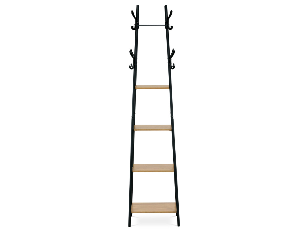 Věšák se 4 policemi, dekor divoký dub, MDF, černý lak - GD-170 OAK