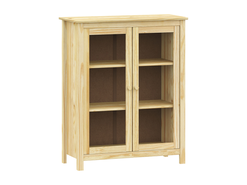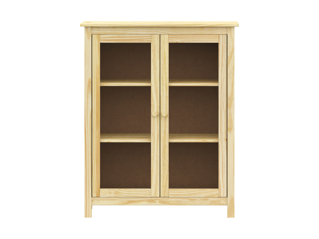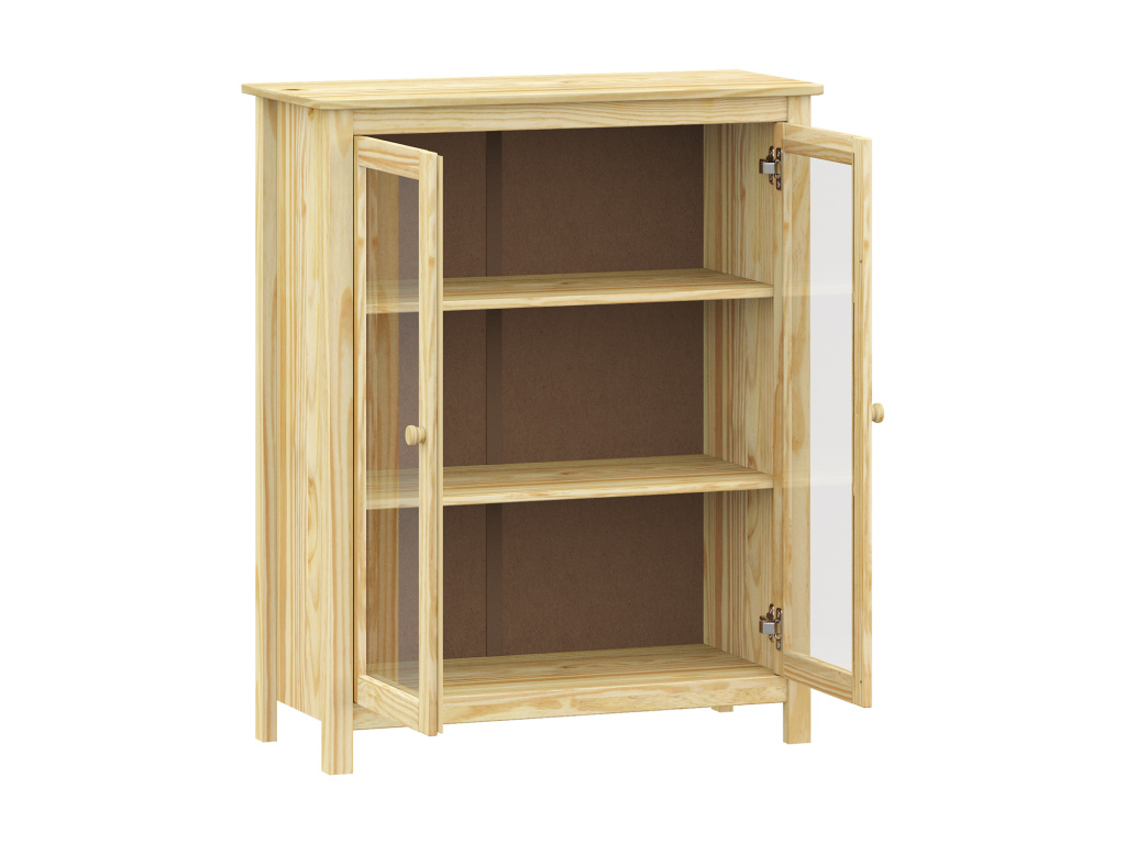 Vitrína 2 dveře TORINO je vyrobena z masivní borovice v odolném lakovaném provedení, které chrání povrch a zvýrazňuje přirozenou kresbu dřeva. Nabízí 2 elegantní prosklené dveře a 2 vnitřní police, na které můžete vystavit dekorace, nádobí či knihy. Maximální nosnosti jednotlivých částí jsou uvedeny v návodu k montáži.