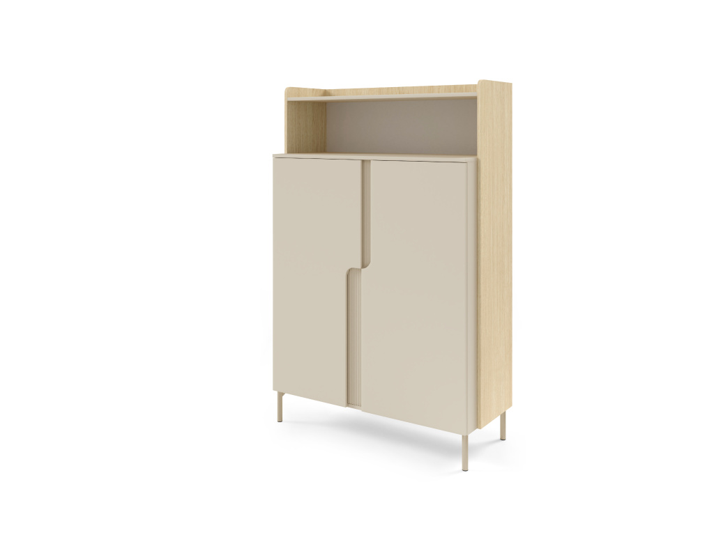 Vitrína POSITANO s policemi je elegantním řešením pro vystavení dekorací, skla či oblíbených doplňků a zároveň přináší do interiéru moderní a nadčasový vzhled. Kvalitní ABS dýha zajišťuje vysokou odolnost povrchu proti poškrábání a snadnou údržbu, takže vitrína si zachová svůj vzhled i při každodenním používání. Promyšlené uspořádání polic nabízí přehledný úložný prostor a stabilní konstrukce zaručuje dlouhou životnost. Díky čistým liniím se vitrína hodí do obývacího pokoje, jídelny i pracovny a snadno se kombinuje s ostatním nábytkem kolekce POSITANO. Dostupné barevné kombinace: dub mavelie + makadamie, kašmír + ořech alba.