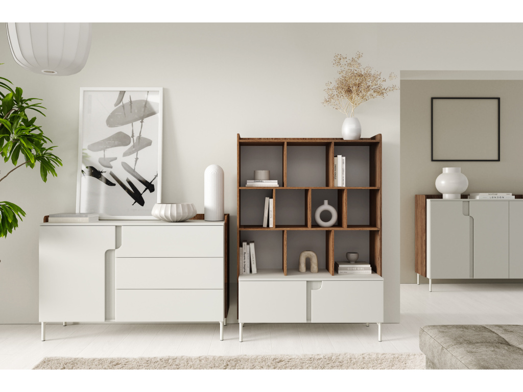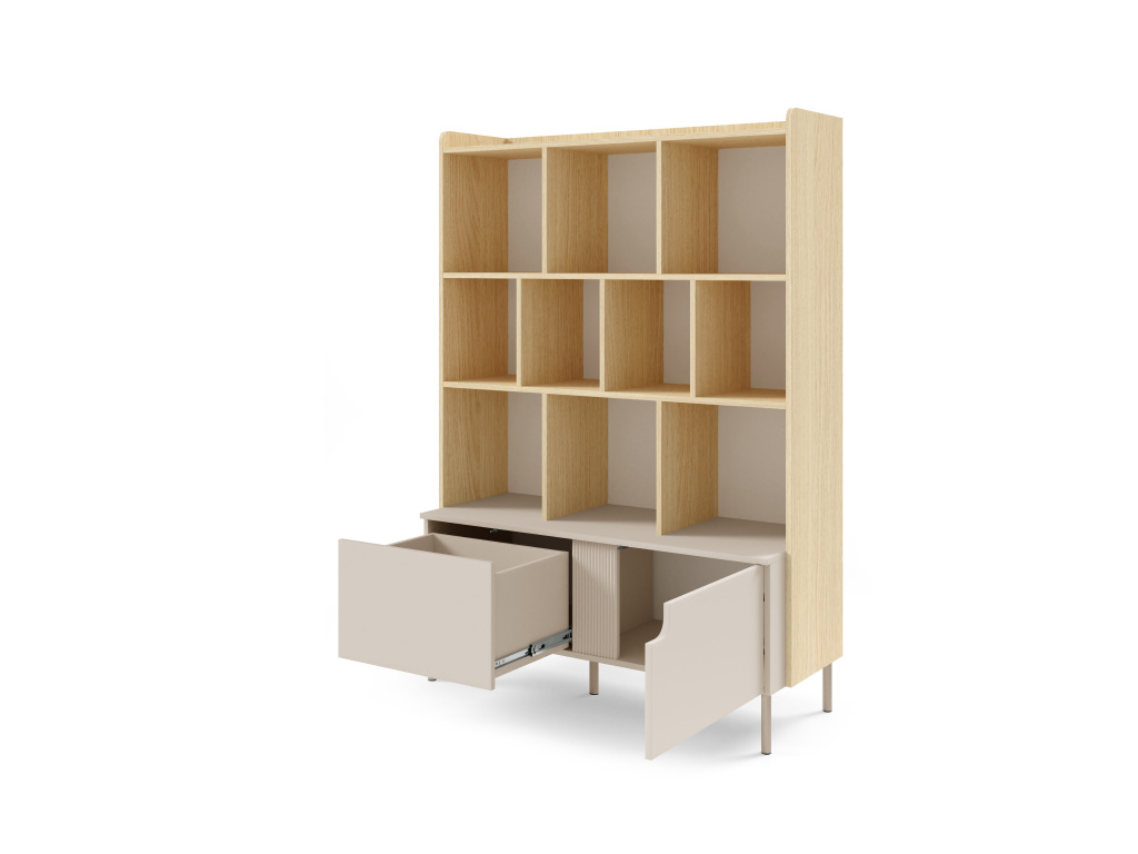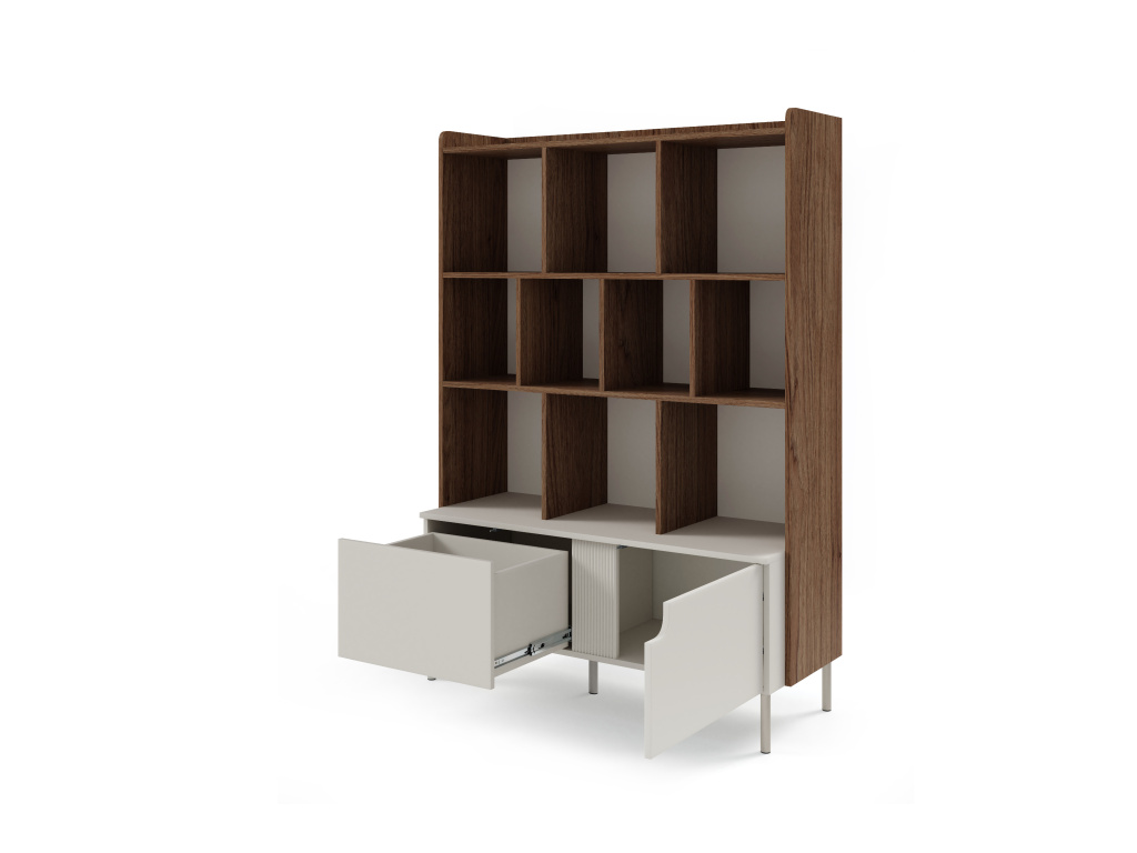 Vitrína POSITANO s policemi, jedním šuplíkem a uzavřeným úložným prostorem je praktickým a elegantním řešením pro moderní interiér, které umožňuje přehledně uložit i stylově vystavit dekorace, sklo nebo drobnosti. Kvalitní ABS dýha zajišťuje vysokou odolnost proti poškrábání, snadnou údržbu a dlouhou životnost při každodenním používání. Promyšlené vnitřní členění kombinuje otevřený i uzavřený prostor, takže vše má své místo a zůstává uspořádané. Díky čistým liniím a nadčasovému designu se vitrína skvěle hodí do obývacího pokoje, jídelny i pracovny a snadno se kombinuje s ostatním nábytkem kolekce POSITANO. Dostupné barevné kombinace: dub mavelie + makadamie, kašmír + ořech alba.
