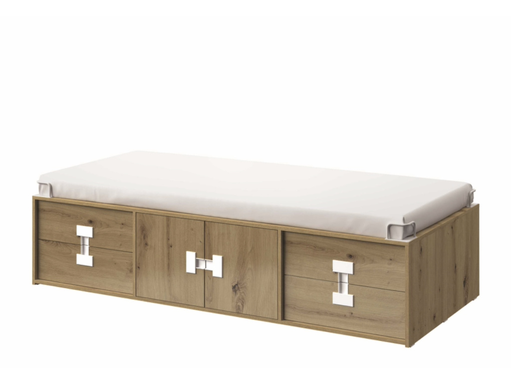 Postel vysoká vč. roštu 90x200 Index 15 z kolekce INDEX je moderní, elegantní a praktický kus nábytku, který vytvoří útulné prostředí pro děti i mládež. Díky různě kombinovatelným prvkům kolekce INDEX lze prostor snadno přizpůsobit vašim představám. Korpus postele je vyroben z kvalitní dřevotřísky v odstínu dub artisan mat, která je odolná proti poškrábání, a dveře jsou dostupné v provedení bílý lesk, dub artisan lesk nebo šedý lesk. Úchytky lze volit v barvách bílá, černá, dub a šedá. Materiál tvoří lamino o síle 16 mm, hrany jsou zakončeny ABS hranou, úchytky jsou plastové a šuplíky disponují kulovými pojezdy s plným výsuvem. Rozměry postele jsou 204 x 53 x 94 cm s plochou na spaní 90 x 200 cm. Rošt je součástí balení, matrace však není zahrnuta v ceně, ale můžete si ji vybrat z nabídky na našem e-shopu. Postel je dodávána v demontu spolu s montážním návodem a bez vyobrazených doplňků. Další díly ze série INDEX jsou dostupné na našem e-shopu.
