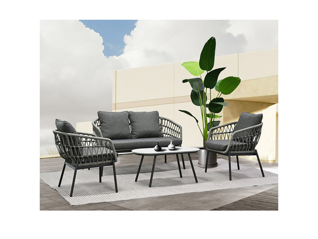 Tato elegantní zahradní sedací souprava značky Autronic je perfektní volbou pro každou venkovní terasu či zahradu. Je vyrobena z odolného polyratanu v šedém odstínu, který dodává nábytku svěží a moderní vzhled. Konstrukce z kovu s práškovou úpravou v antracitové barvě zaručuje dlouhou životnost a stabilitu. Voděodolné polštáře poskytují maximální pohodlí a jsou ideální pro venkovní použití za každého počasí. Deska stolku je vyrobena z polywood materiálu, který má velmi dlouhou životnost a je odolný proti vnějším vlivům počasí.Tento set kombinuje styl a funkčnost, ať už chcete relaxovat nebo uspořádat venkovní posezení s přáteli. Souprava je navíc snadno udržovatelná a velmi praktická.Doplňkové parametry