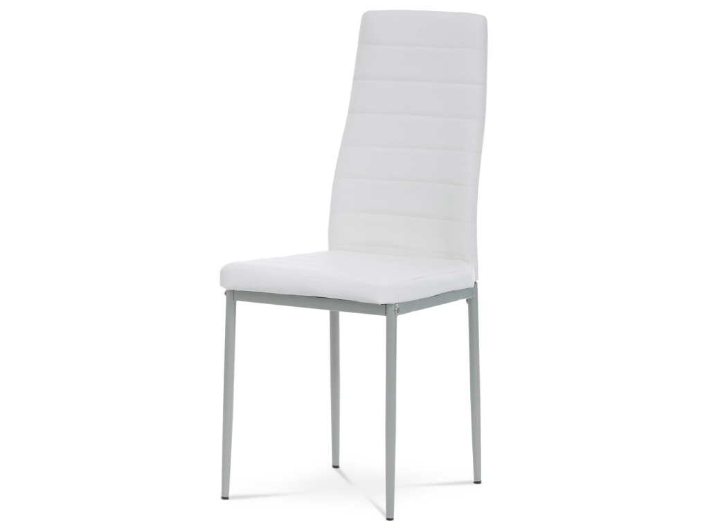Židle jídelní, bílá koženka, šedý kov - DCL-377 WT