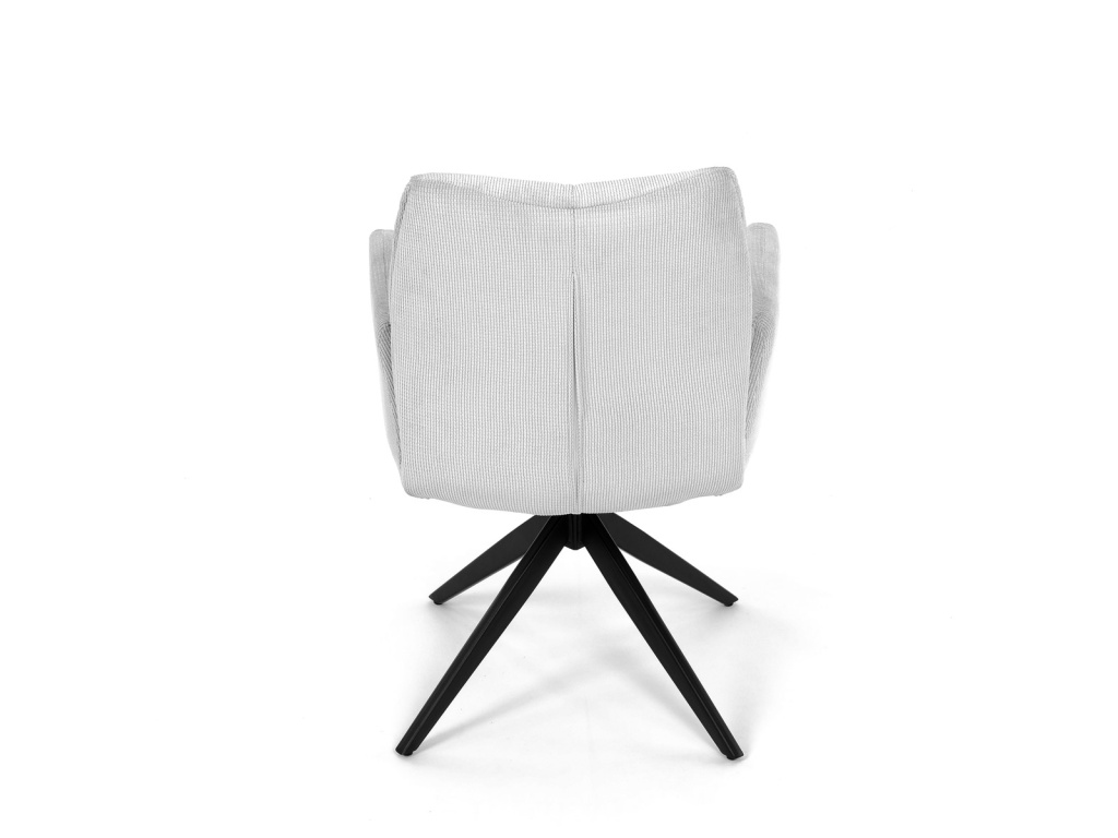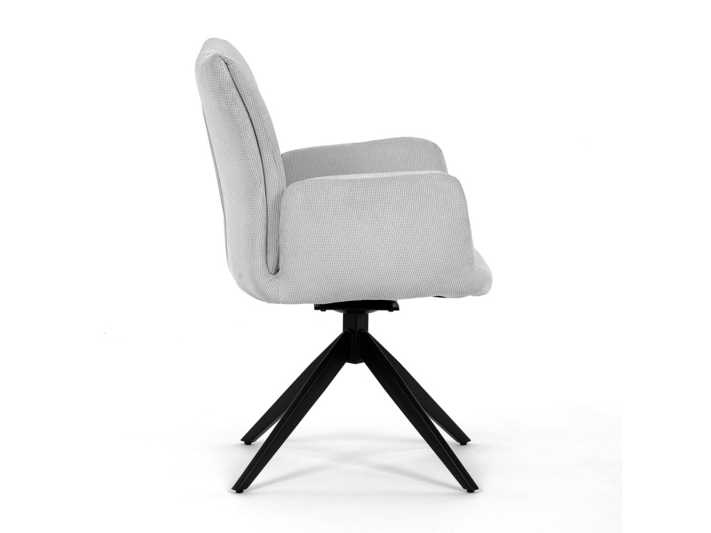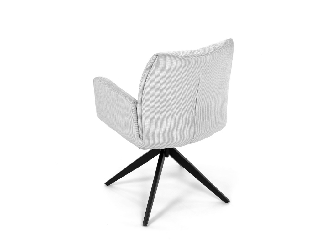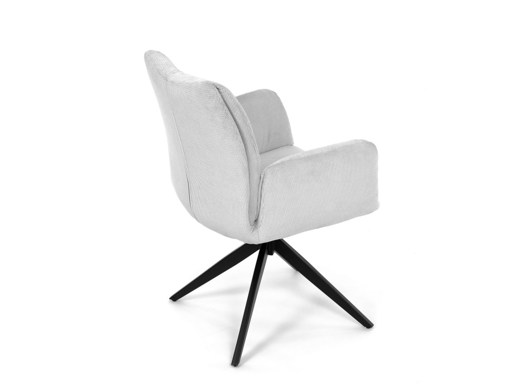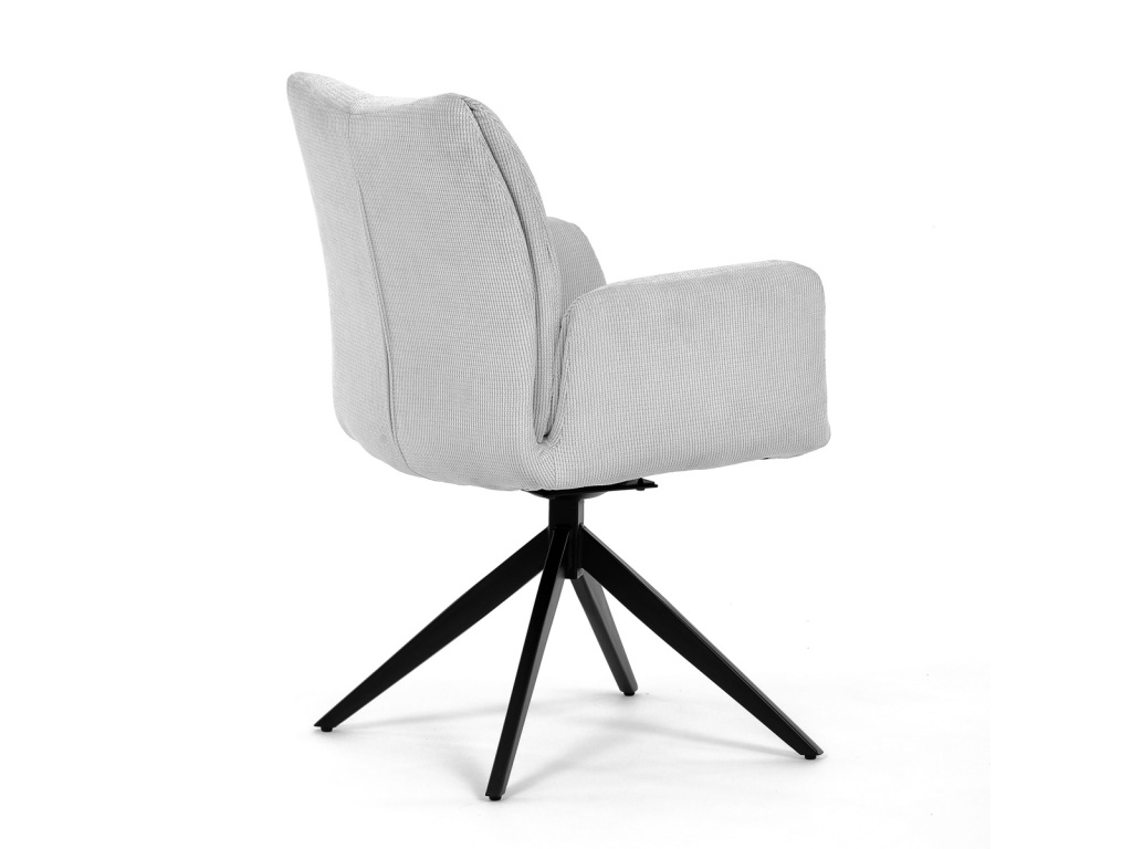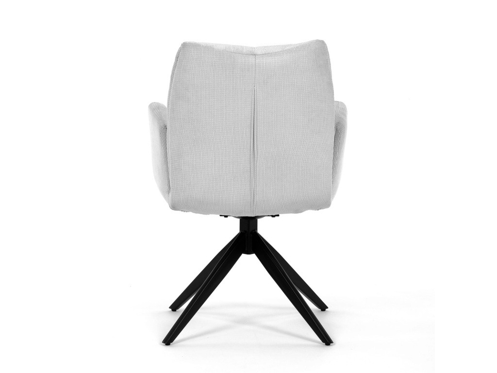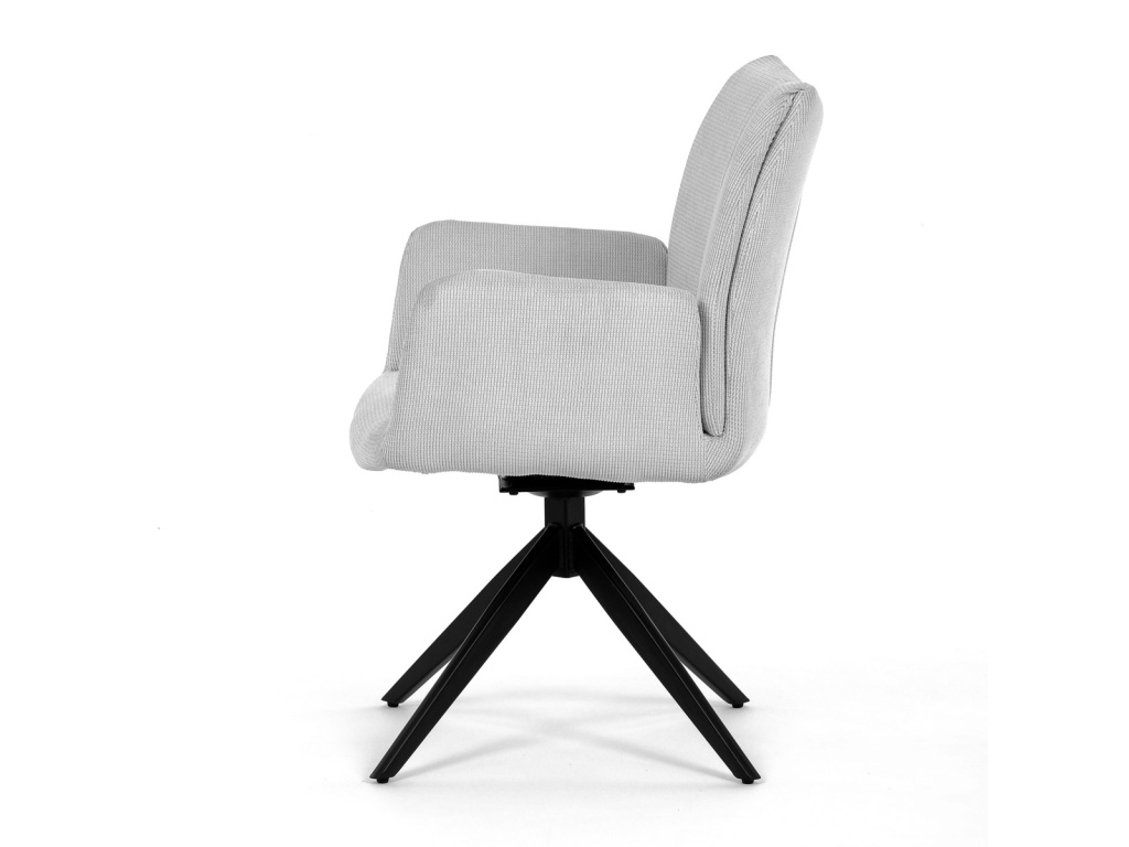 Představujeme vám naši jídelní židli s bílým textilním potahem a otočným mechanismem o 180°, který je umístěný na černé kovové základně. Tato židle kombinuje sofistikovaný vzhled s praktičností a flexibilitou, ideální pro moderní jídelny nebo pracovní prostory. Bílý textilní potah dodává židli čistý a elegantní vzhled, zatímco otočný mechanismus umožňuje snadnou manipulaci a zvyšuje komfort uživatele.