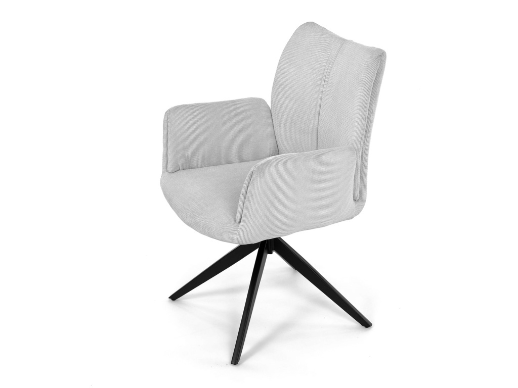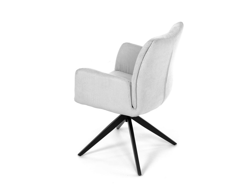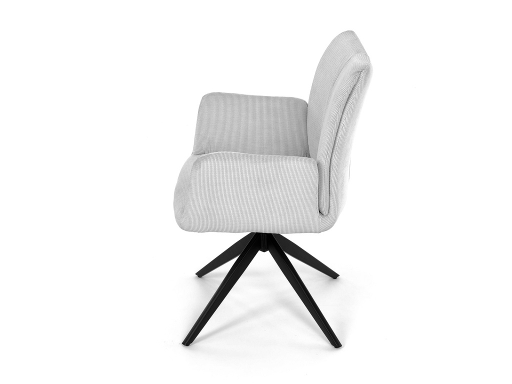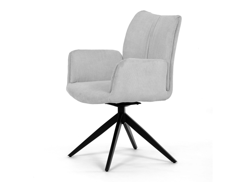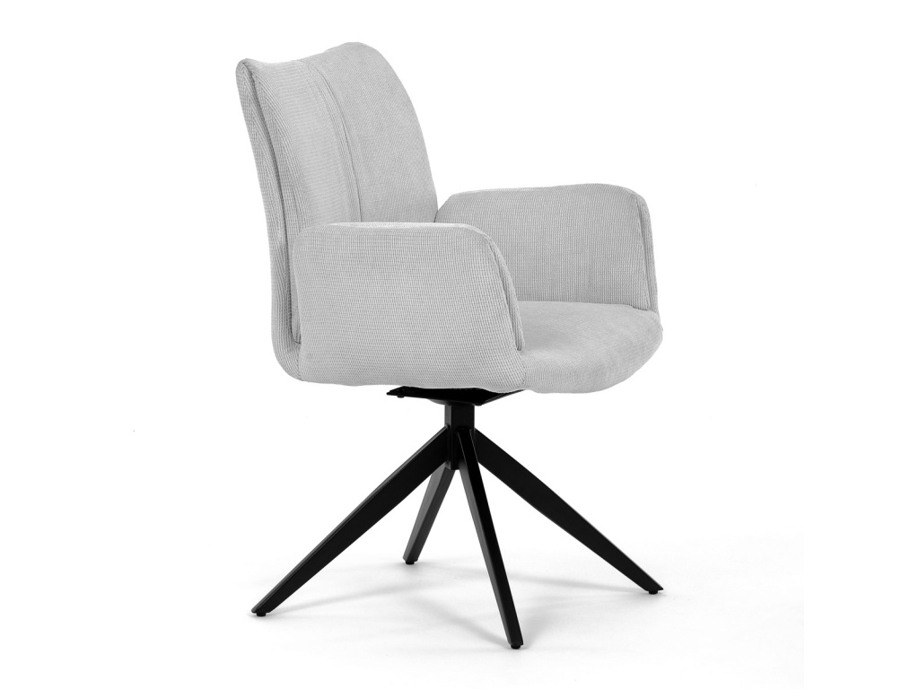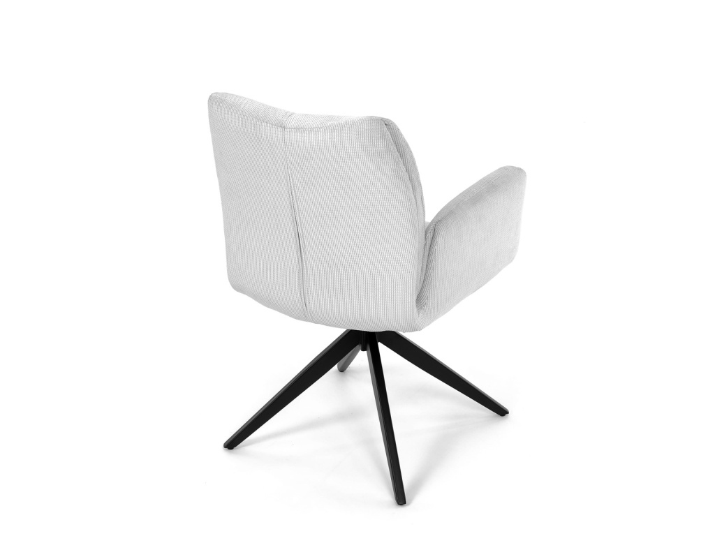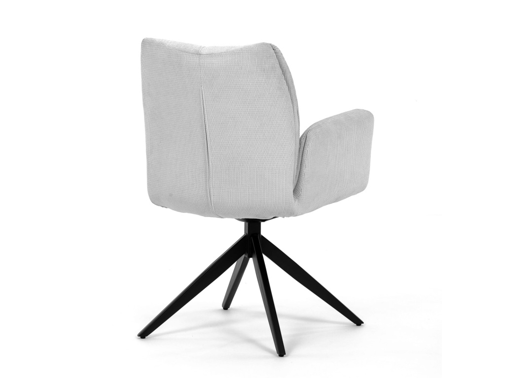 Představujeme vám naši jídelní židli s bílým textilním potahem a otočným mechanismem o 180°, který je umístěný na černé kovové základně. Tato židle kombinuje sofistikovaný vzhled s praktičností a flexibilitou, ideální pro moderní jídelny nebo pracovní prostory. Bílý textilní potah dodává židli čistý a elegantní vzhled, zatímco otočný mechanismus umožňuje snadnou manipulaci a zvyšuje komfort uživatele.