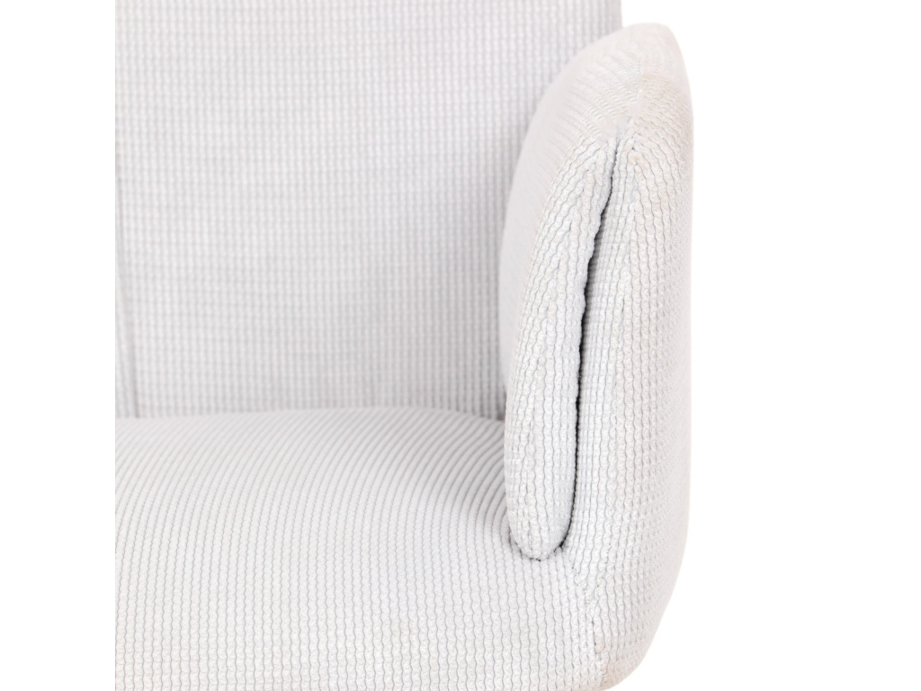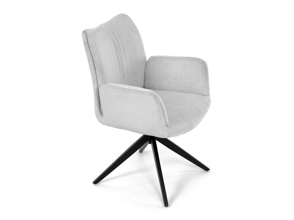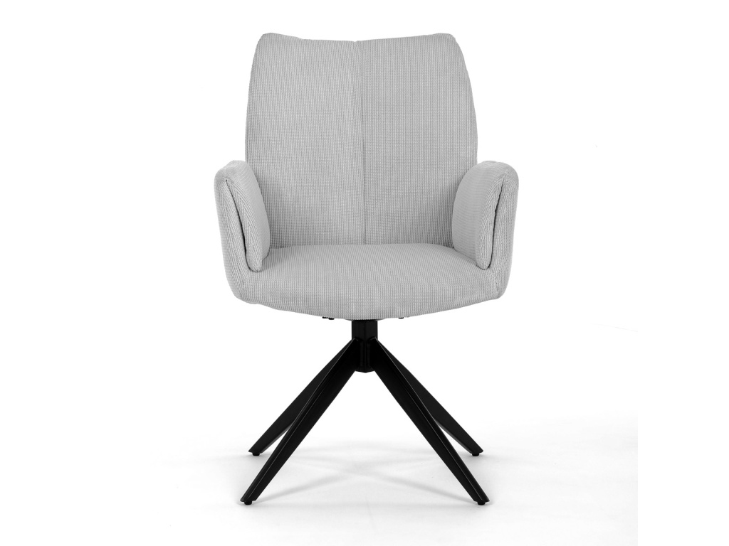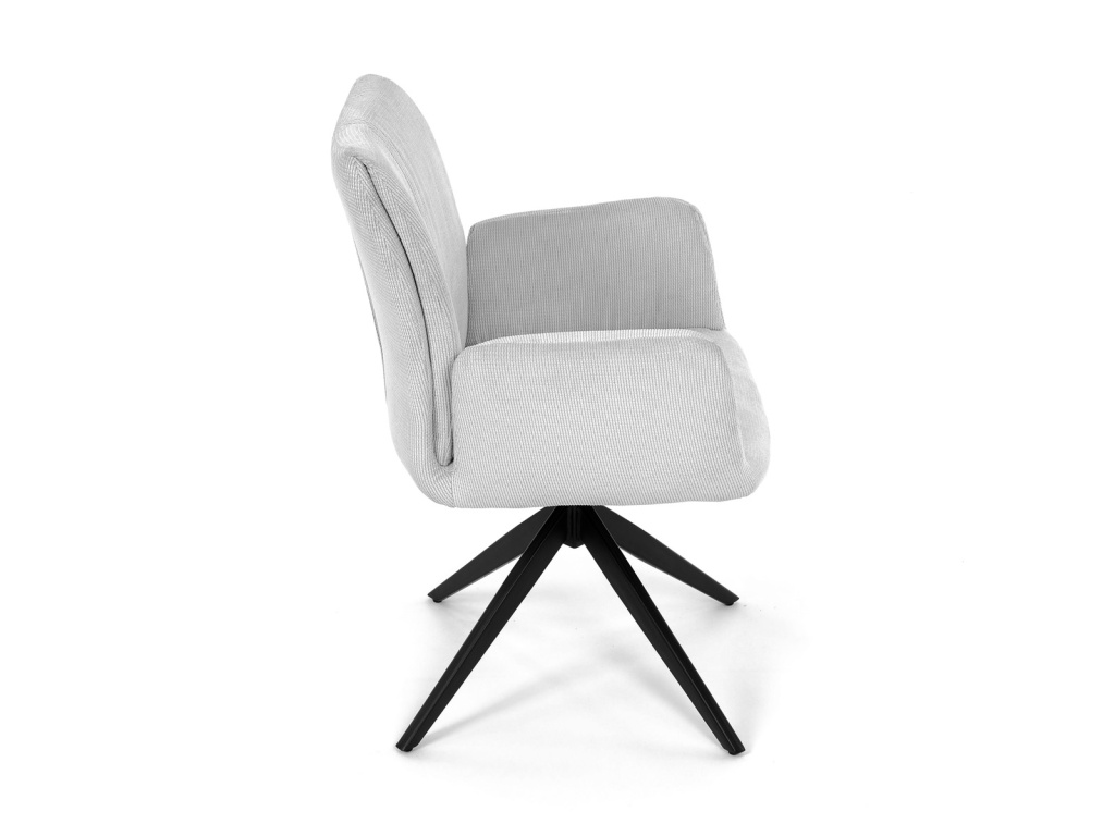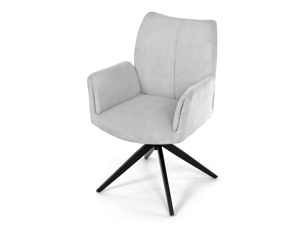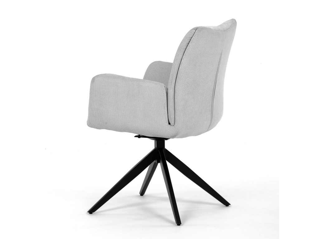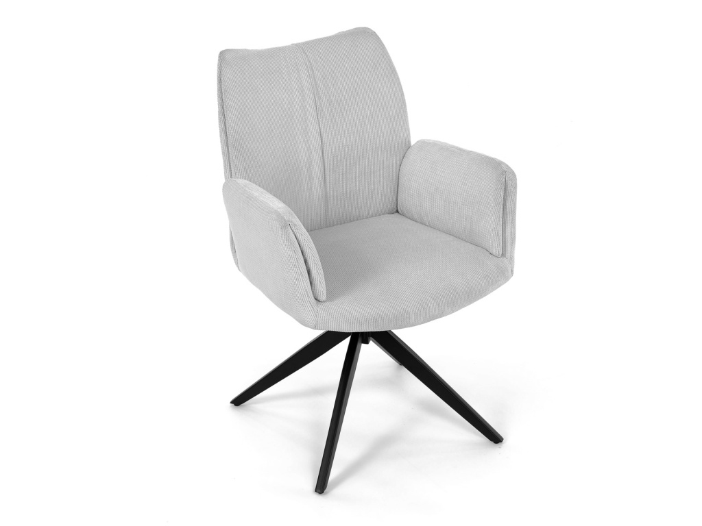 Představujeme vám naši jídelní židli s bílým textilním potahem a otočným mechanismem o 180°, který je umístěný na černé kovové základně. Tato židle kombinuje sofistikovaný vzhled s praktičností a flexibilitou, ideální pro moderní jídelny nebo pracovní prostory. Bílý textilní potah dodává židli čistý a elegantní vzhled, zatímco otočný mechanismus umožňuje snadnou manipulaci a zvyšuje komfort uživatele.