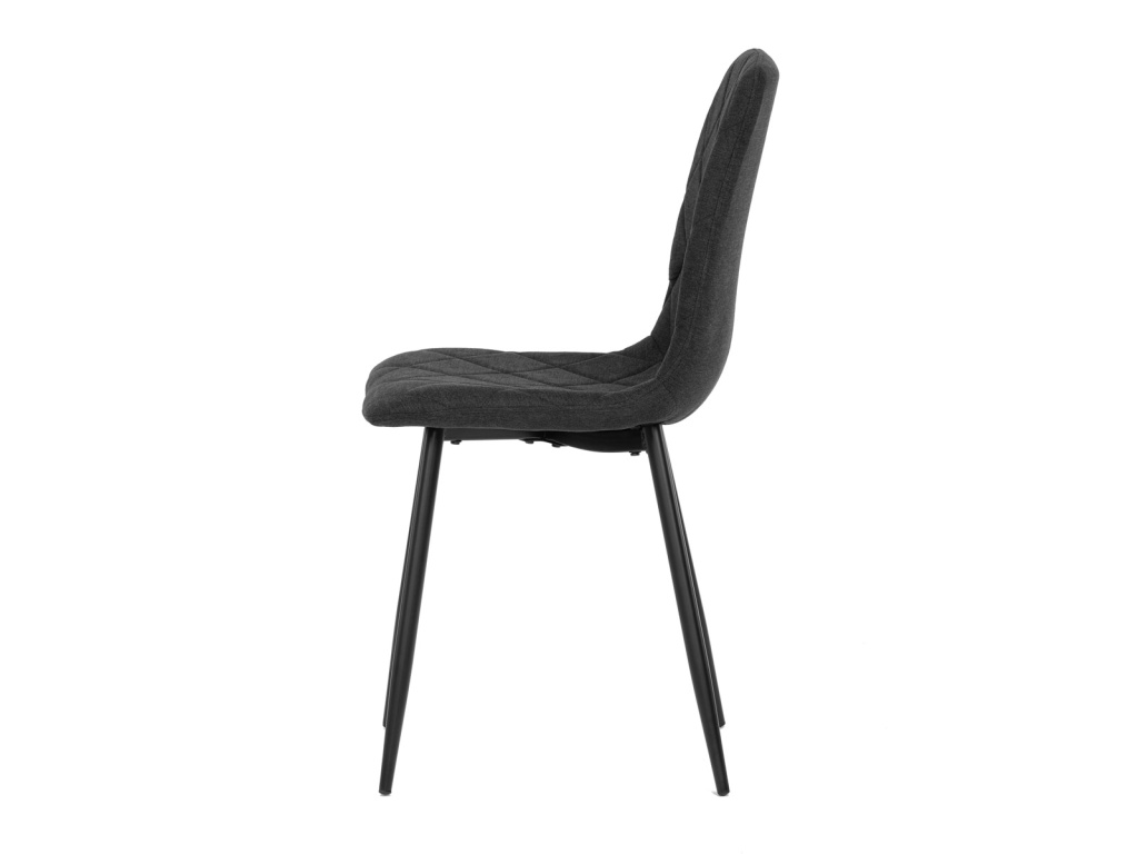 Moderní, stylová a pohodlná – to jsou hlavní atributy této černé jídelní židle s látkovým potahem a černými kovovými nohami.Tato elegantní jídelní židle je ideální volbou pro moderní interiéry. Maximální komfort je dosažen polstrováním sedáku i zádové opěrky. Čalounění z vysoce kvalitní hladké tkaniny zajistí skvělý komfort při jídle nebo dlouhých večerech s přáteli a rodinou. Díky nohám vyrobeným z kovu je zajištěna zvýšená stabilita a odolnost proti opotřebení. Matná barva v kombinaci s hladkou látkou vytváří vkusný a moderní vzhled. Nosnost činí 120 kg.Doplňkové parametry