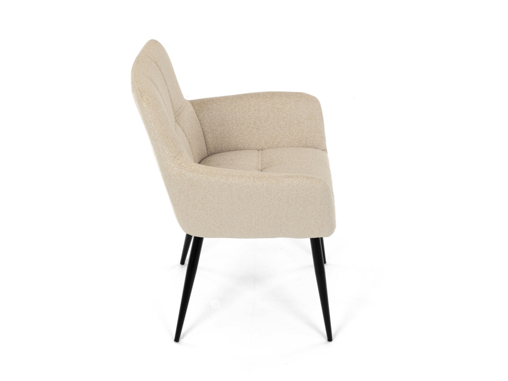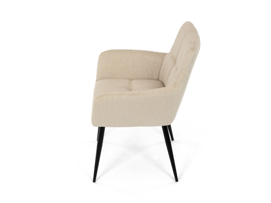 Elegantní krémová jídelní židle od značky Autronic skvěle doplní moderní i klasické interiéry. Tato stylová židle nabízí vysoký komfort díky čalounění z kvalitní látky a mekkému sedáku z PU pěny. Černé kovové nohy zajišťují stabilitu a dodávají židli jemný industriální nádech. Komfortní područky a ergonomické provedení oceníte při každém posezení. Židle se hodí nejen do domácí jídelny, ale i do restauračních prostor, kde vytvoří útulnou atmosféru.Doplňkové parametry