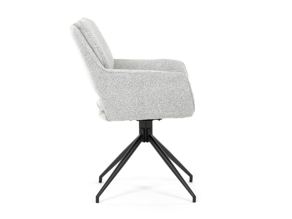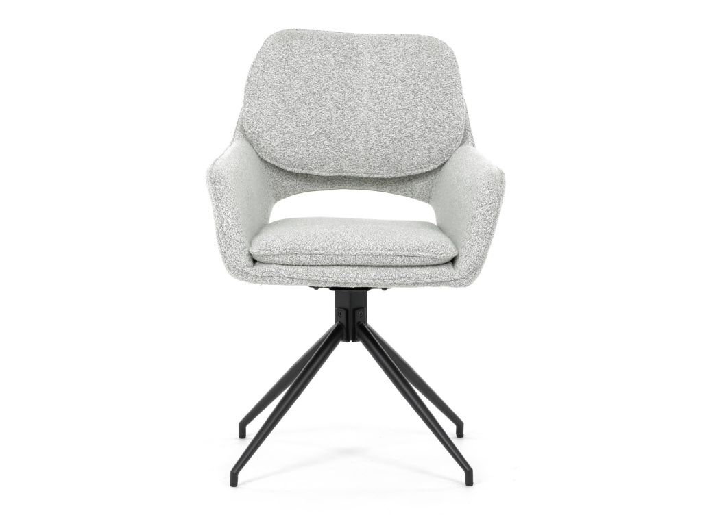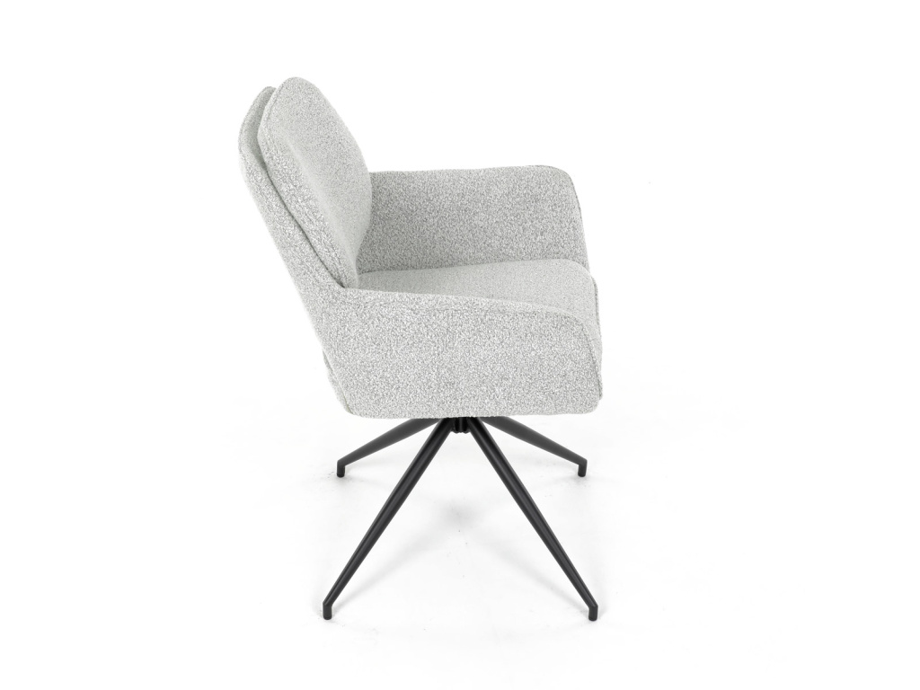 Moderní šedá jídelní židle značky Autronic nabízí elegantní a funkční řešení pro váš interiér. Pohodlné čalounění z hladké látky v kombinaci s výplní z PU pěny zajišťuje komfort i při delším sezení. Otočný mechanismus 180° s funkcí resetu vrátí židli do původní pozice, což je praktické zejména pro vizuální vzhled jídelny. Kovové nohy s centrálním podnožím zajišťují stabilitu a stylový industriální vzhled. Područky a vysoké opěradlo poskytují oporu pro maximální pohodlí. Tato židle je skvělou volbou pro moderní interiéry.Doplňkové parametry