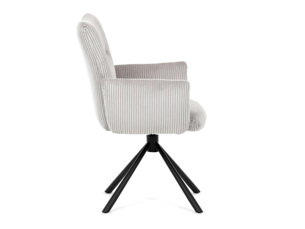 Stylová jídelní židle značky Autronic v moderním designu nabízí nejen pohodlí, ale i funkčnost. Měkké čalounění z manšestrové látky v kombinaci s výplní z PU pěny zajišťuje maximální komfort při sezení. Praktické područky a otočný mechanismus 360° umožňují volnost pohybu a pohodlné používání. Stabilní kovová základna v černé barvě dodává židli eleganci a zaručuje její odolnost. Tato židle je ideální volbou pro jídelny, které hledají spojení stylu a praktičnosti.Doplňkové parametry