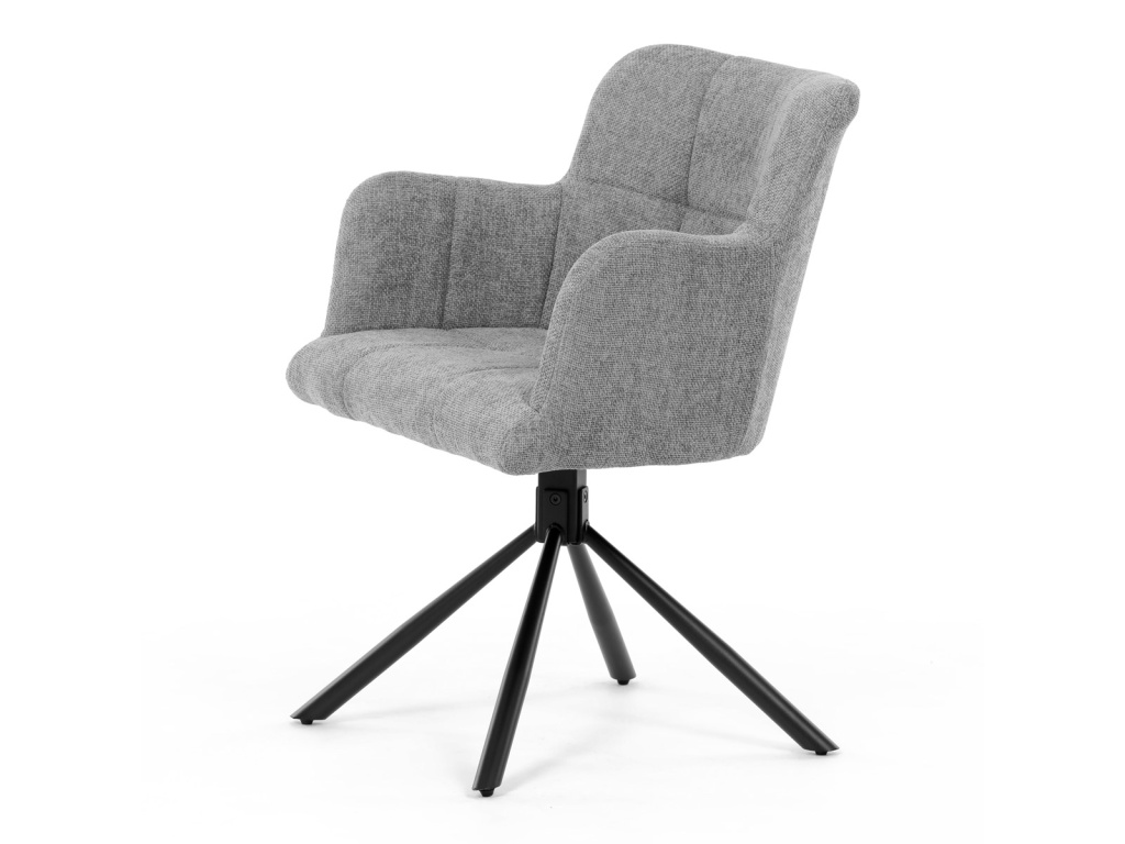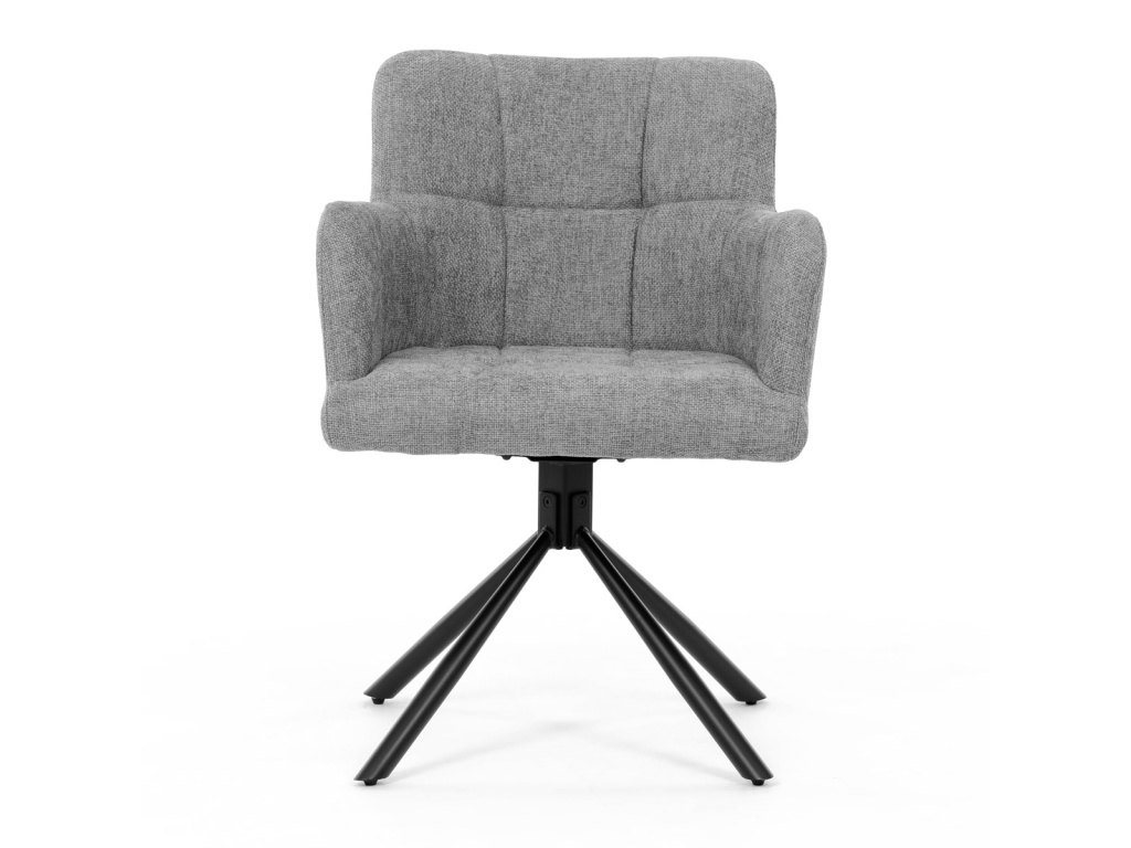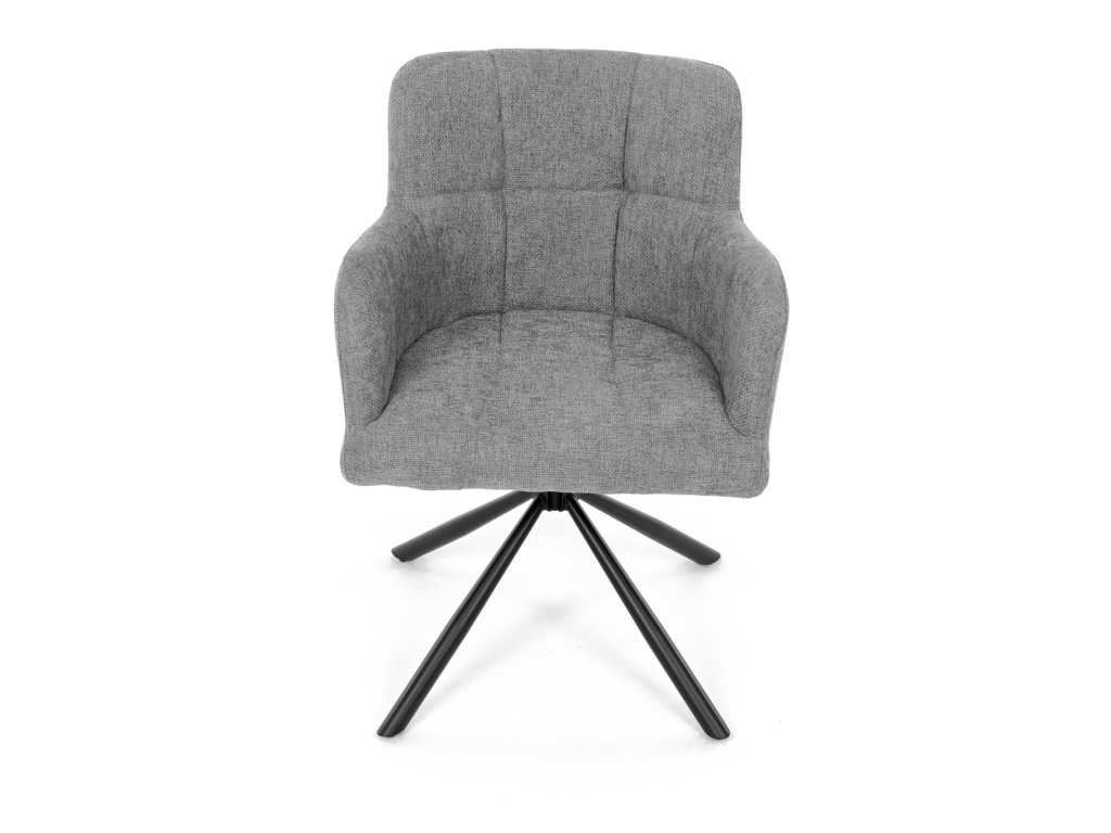 Moderní šedá jídelní židle značky Autronic nabízí elegantní a funkční řešení pro váš interiér. Pohodlné čalounění z hladké látky v kombinaci s výplní z PU pěny zajišťuje komfort i při delším sezení. Otočný mechanismus 180° s funkcí resetu vrátí židli do původní pozice, což je praktické zejména pro vizuální vzhled jídelny. Kovové nohy s centrálním podnožím zajišťují stabilitu a stylový industriální vzhled. Područky a vysoké opěradlo poskytují oporu pro maximální pohodlí. Tato židle je skvělou volbou pro moderní interiéryDoplňkové parametry