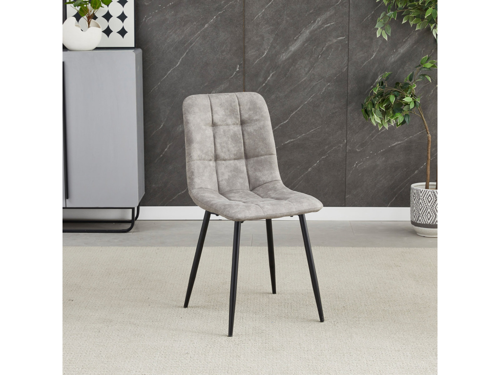Jídelní židle značky Autronic v moderním industriálním stylu je skvělou volbou pro každou jídelnu. Potah z látky vintage v šedém odstínu dodává nábytku osobitý charakter, zatímco elegantní čtvercové prošívání podtrhuje její vzhled. Černé kovové nohy poskytují stabilitu a ladí s minimalistickým designem. Komfort při sezení zajišťuje měkké polstrování z PU pěny, díky kterému je židle ideální jak pro každodenní používání, tak pro slavnostní chvíle.Doplňkové parametry