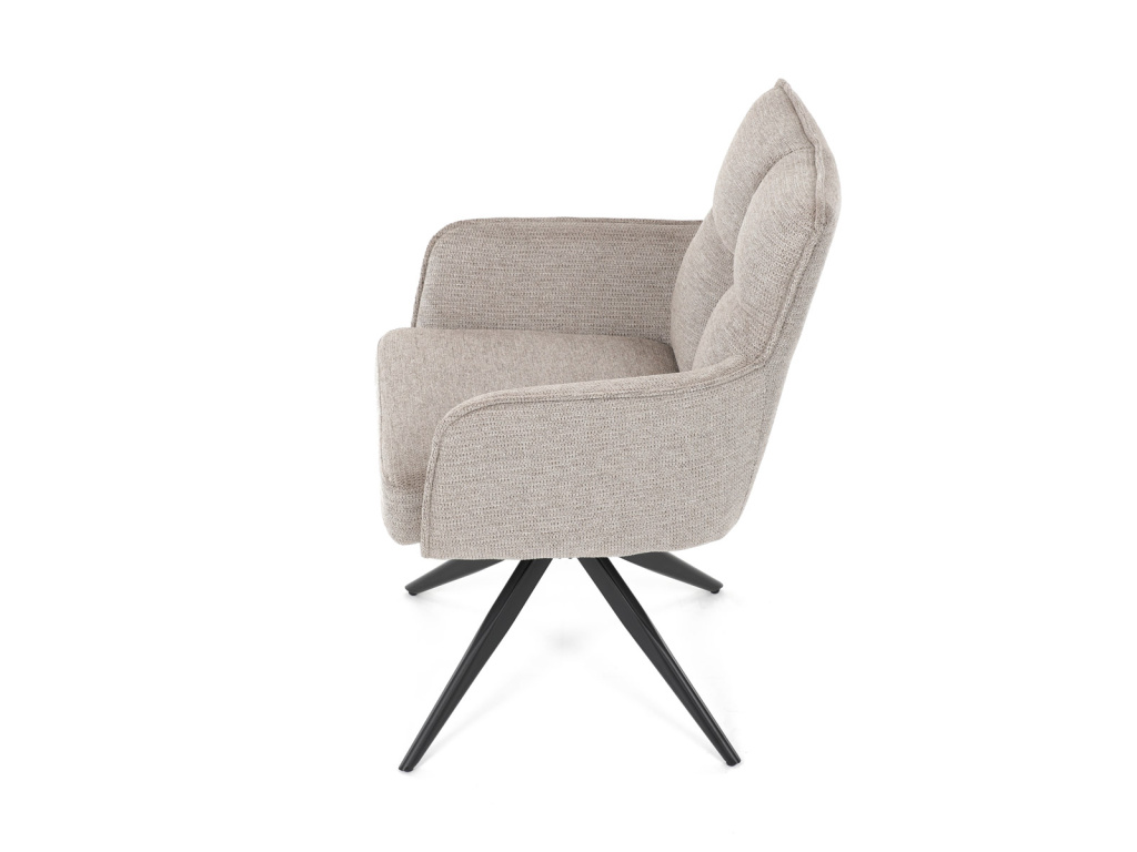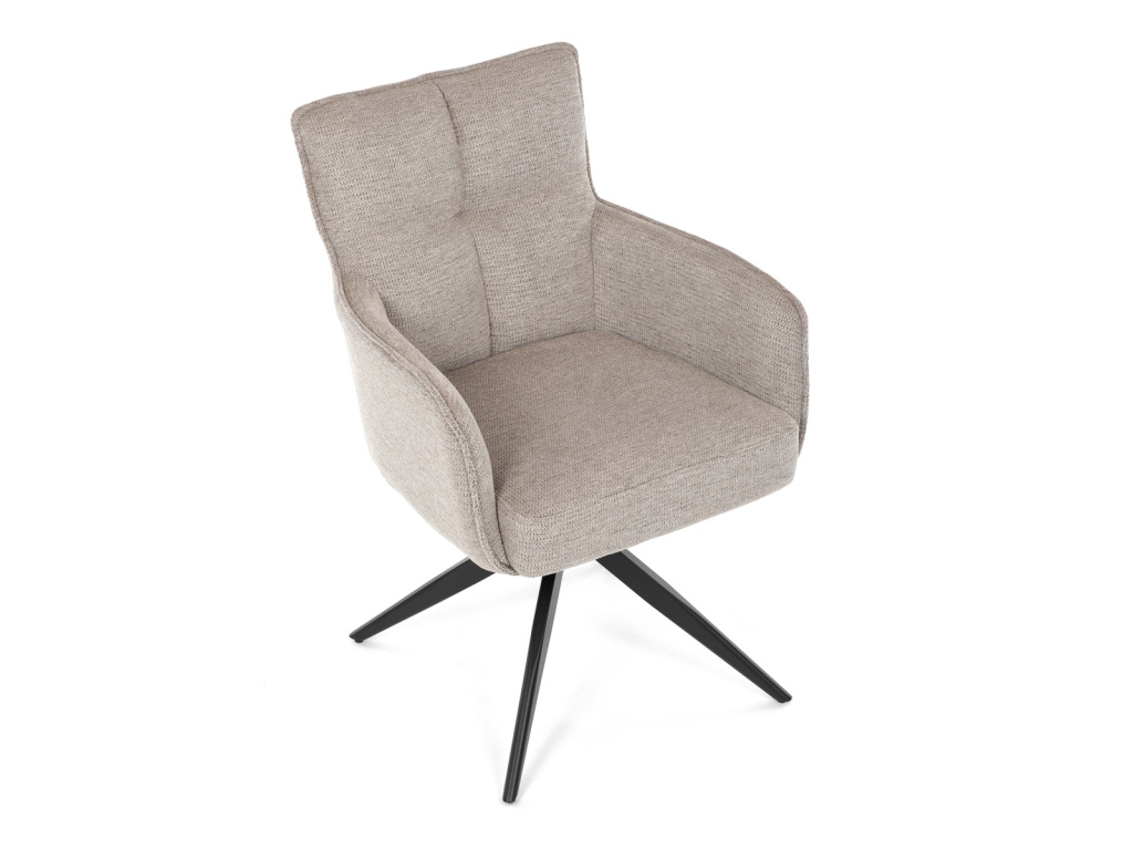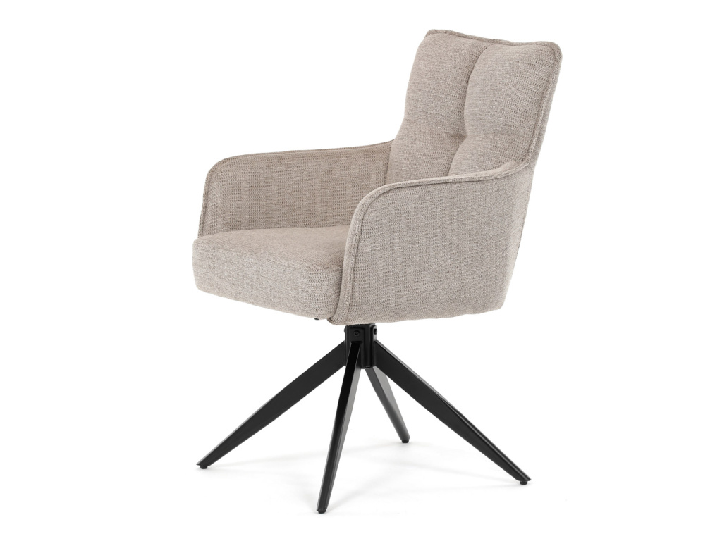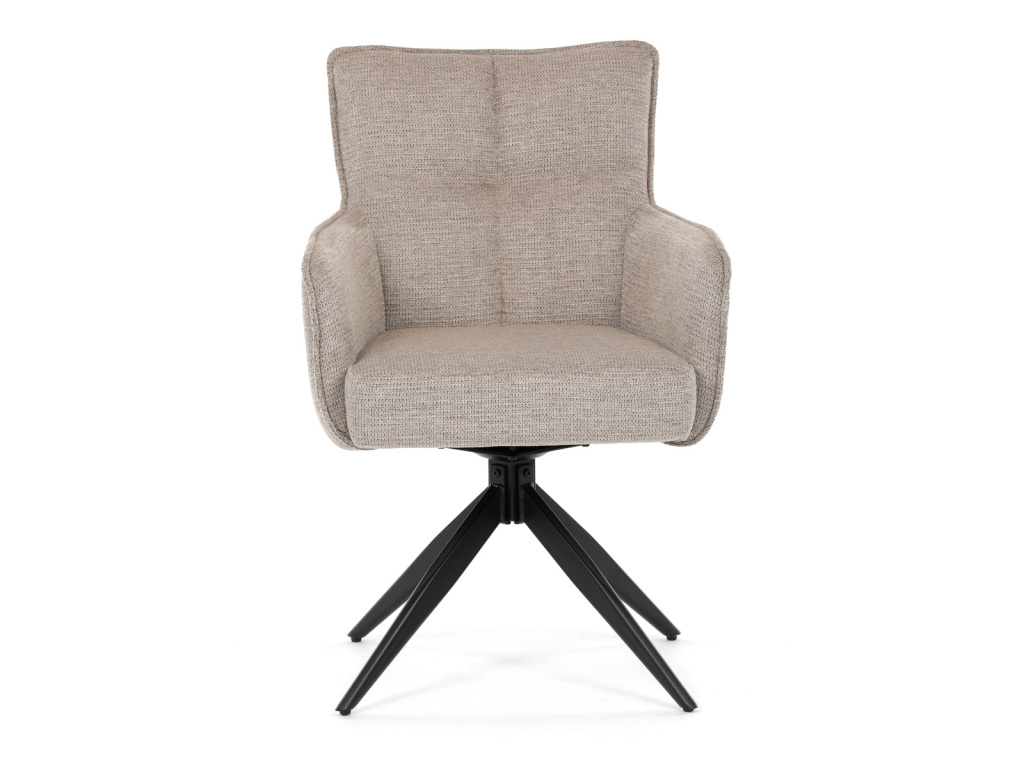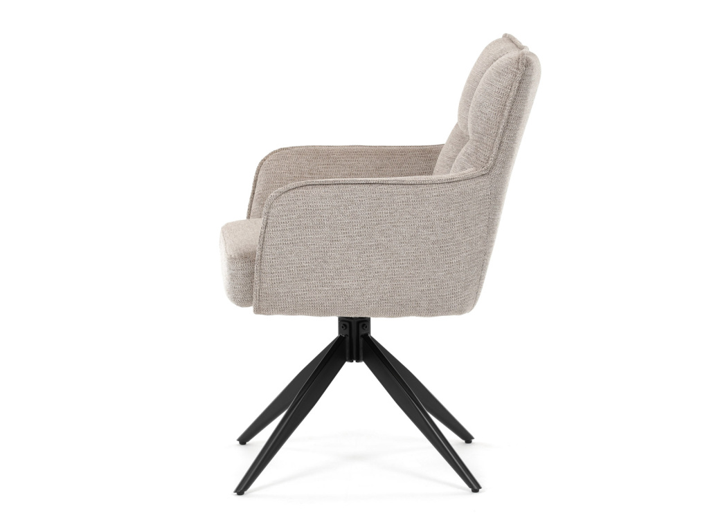 Elegantní otočná jídelní židle značky Autronic přináší do vaší jídelny pohodlí i styl. Béžový potah z voděodolné látky zaručuje snadnou údržbu a dlouhou životnost. Sedák je vybaven taštičkovými pružinami, které zajišťují maximální komfort při sezení. Stabilní centrální kovová podnož v černé barvě podtrhuje moderní design a dodává židli jedinečný vzhled. Díky otočnému mechanismu s vratnou funkcí je židle praktická a flexibilní. Ideální volba pro moderní interiéry, které kladou důraz na funkčnost a estetiku.Doplňkové parametry