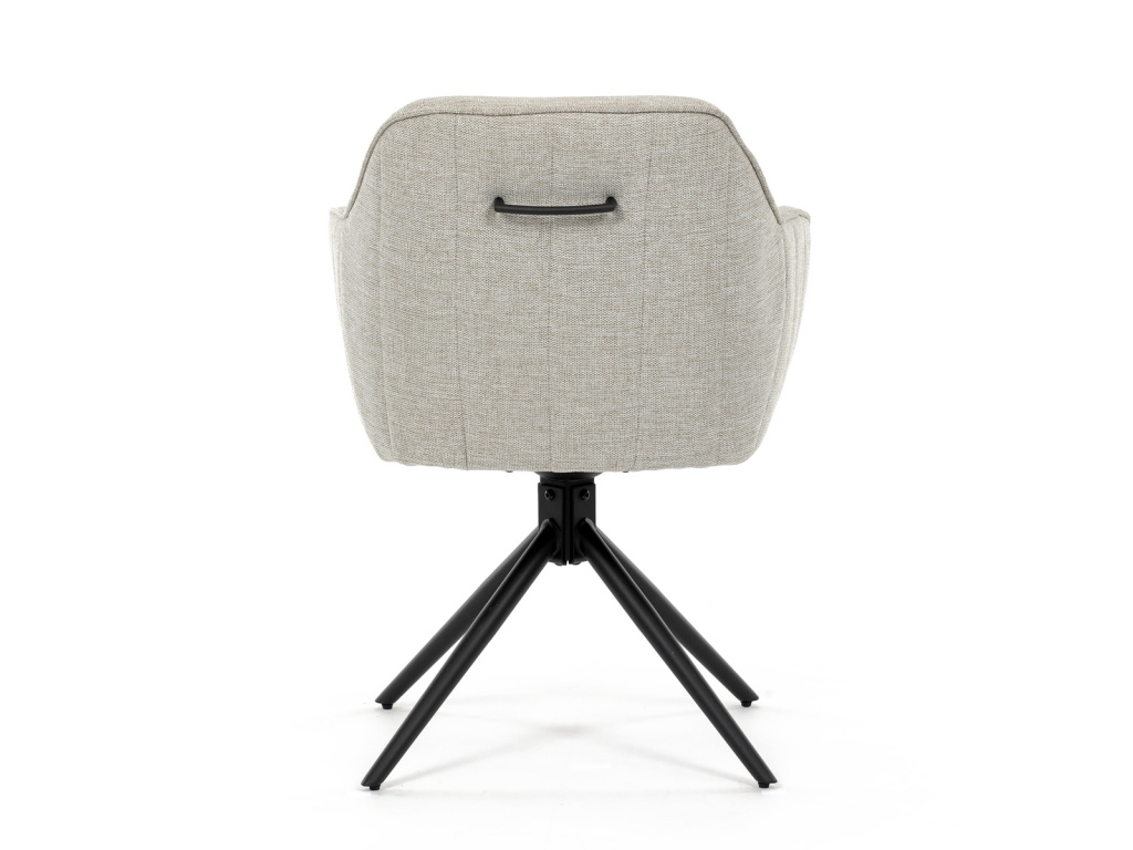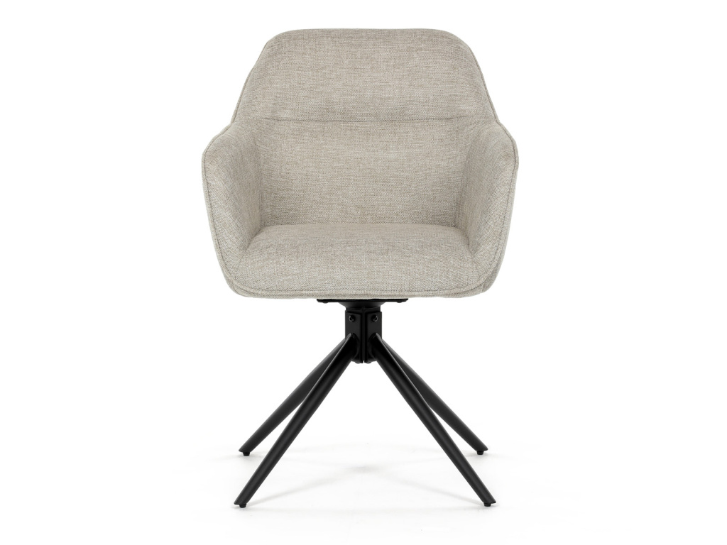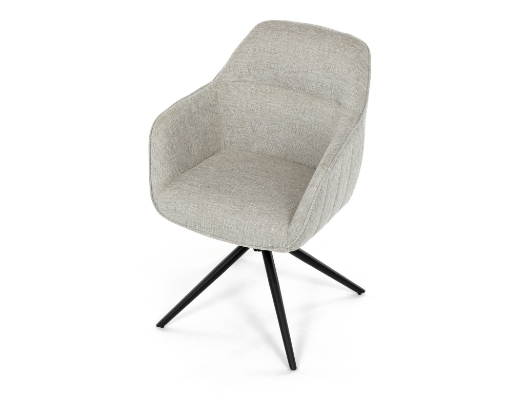 Moderní jídelní židle v krémové barvě s efektním prošitím zádové i přední části opěráku. Prošití je v brvě potahového materiálu. Zadní část opěráku je opatřena vkusným madlem pro snazší manipulaci. Čtyři kovové nohy v matném práškovém nástřiku vycházejí z centrálního bodu ve středu sedáku. Sedák je otočný o P90°+ L 90° s vratným mechanismem - funkce reset.Doplňkové parametry