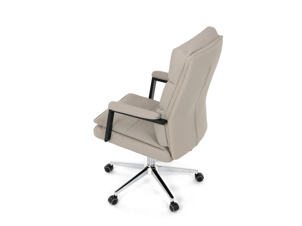Kancelářská židle značky Autronic v moderním béžovém provedení je dokonalou kombinací elegance a funkčnosti. Potah z hladké ekokůže působí luxusně a snadno se udržuje, což oceníte při každodenním používání. Čalouněné područky a dvojitý sedák zajišťují vysoký komfort při práci. Stabilitu zaručuje chromovaný kříž, který je navíc odolný proti opotřebení. Houpací mechanismus přináší možnost relaxace během pracovního dne. Tato židle se stane stylovým a praktickým doplňkem vaší kanceláře nebo domácí pracovny.Doplňkové parametry