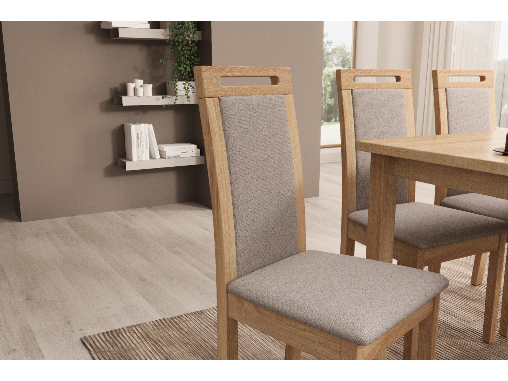 Židle Nola VI spojuje moderní design s praktickou funkčností, čímž se stává stylovým a pohodlným doplňkem každého interiéru – od minimalistické jídelny až po elegantní kancelář. Výrazným prvkem je vyříznutá rukojeť v horní části opěradla, která nejen zaujme na pohled, ale také usnadňuje manipulaci. Čalouněné sedadlo a opěradlo zajišťují maximální komfort při sezení, zatímco pevná konstrukce zaručuje stabilitu a dlouhou životnost. Díky svému univerzálnímu vzhledu se Nola VI snadno přizpůsobí různým stylům zařízení a přinese do prostoru sofistikovaný, ale zároveň nenápadný dekorativní prvek.