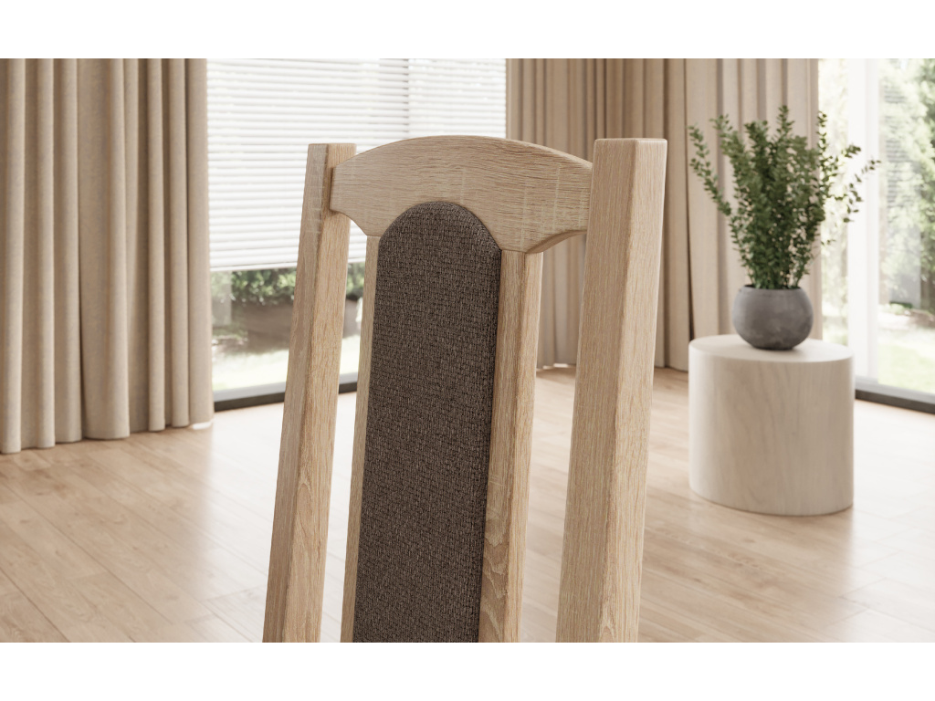 Židle Vos VII je návrh pro milovníky klasiky v moderním provedení, která spojuje solidní zpracování s elegantním dokončením. Její charakteristické, dekorativně profilované opěradlo s čalouněným panelem dodává nábytku jedinečný charakter a činí z něj výrazný prvek každého uspořádání. Čalouněné sedadlo zajišťuje pohodlí při používání a stabilní dřevěná konstrukce zaručuje trvanlivost na léta. Vos VII se ideálně hodí do jídelen, obývacích pokojů nebo interiérů udržovaných v tradičním nebo rustikálním stylu, kde záleží jak na estetice, tak na funkčnosti. Tato židle přináší do domácího prostoru útulnost a eleganci, přičemž si zachovává plnou praktičnost pro každodenní používání.