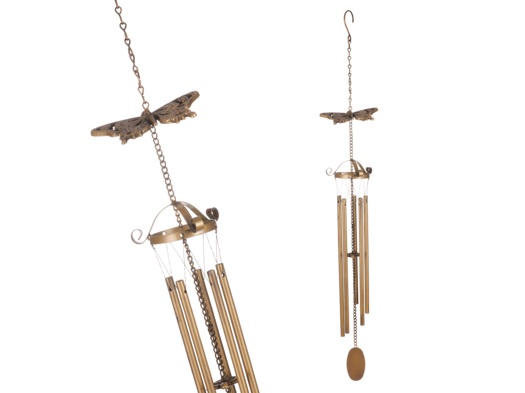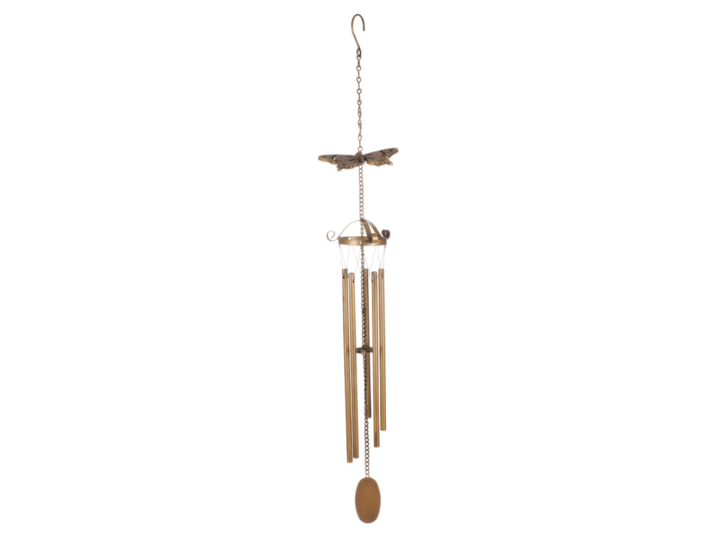 Zvonkohra vytváří při pohybu větru jemnou melodii a tím napomáhá obohatit okolní prostředí o příjemný zvukový efekt. Konstrukce je tvořena jemnými kovovými trubičkami zavěšenými na provázku. Díky tomu při závanu větru do sebe naráží a vytváří tím onen líbivý zvuk. Konkrétně tato je navíc ozdobena siluetou motýla a je v krásné měděné barvě. V některých případech může zvonkohra plnit i užitečnou funkci tím, že odežene nezvané návštěvníky v podobě ptáků či jiných živočichů, kteří by si jinak třeba pochutnali na naší úrodě. Zvonkohru můžeme díky háčku na řetízku zavěsit na hřebíček v pergole, altánku, nebo za jakoukoli vhodnou větev poblíž.Doplňkové parametry